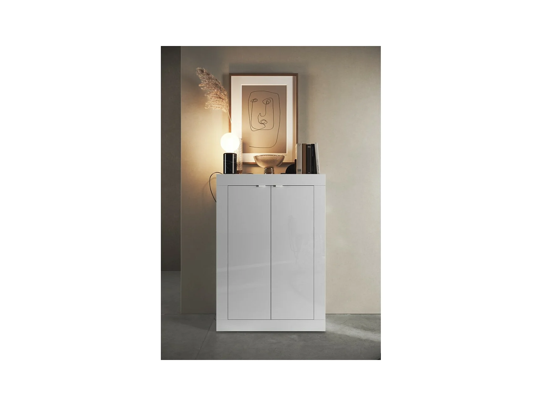 Móvel para sapatos, coleção CISA, cor branco brilhante laqueado