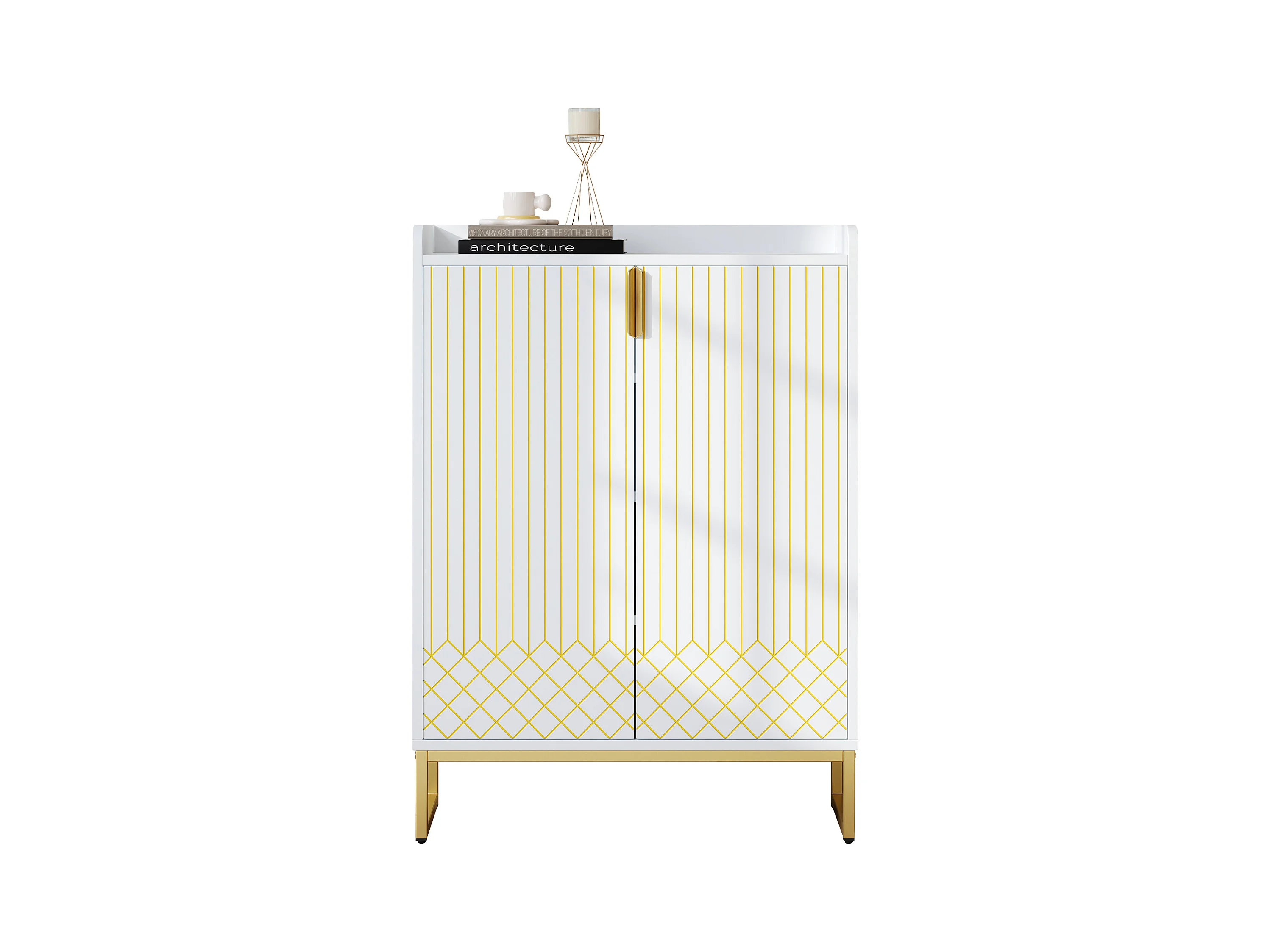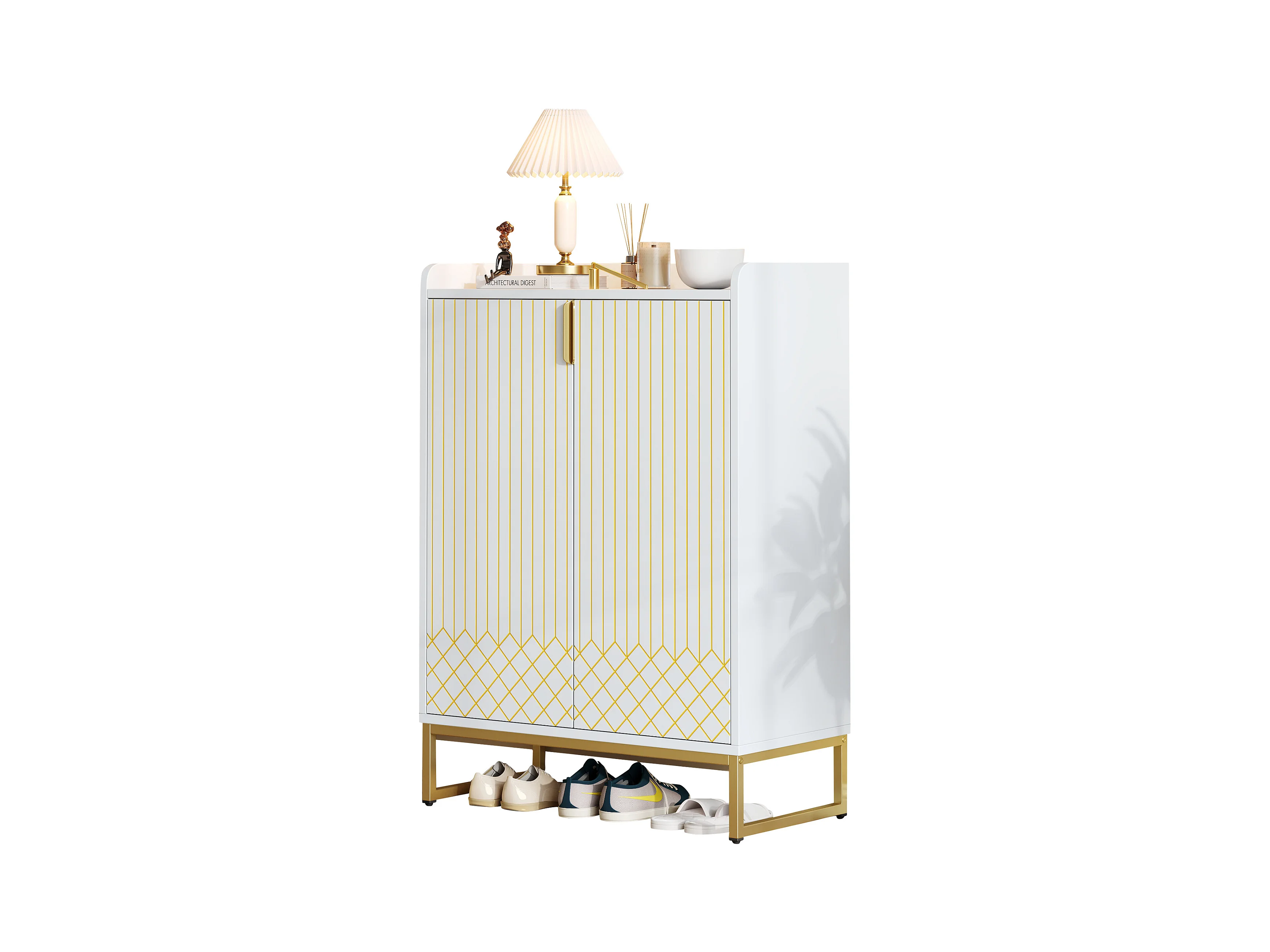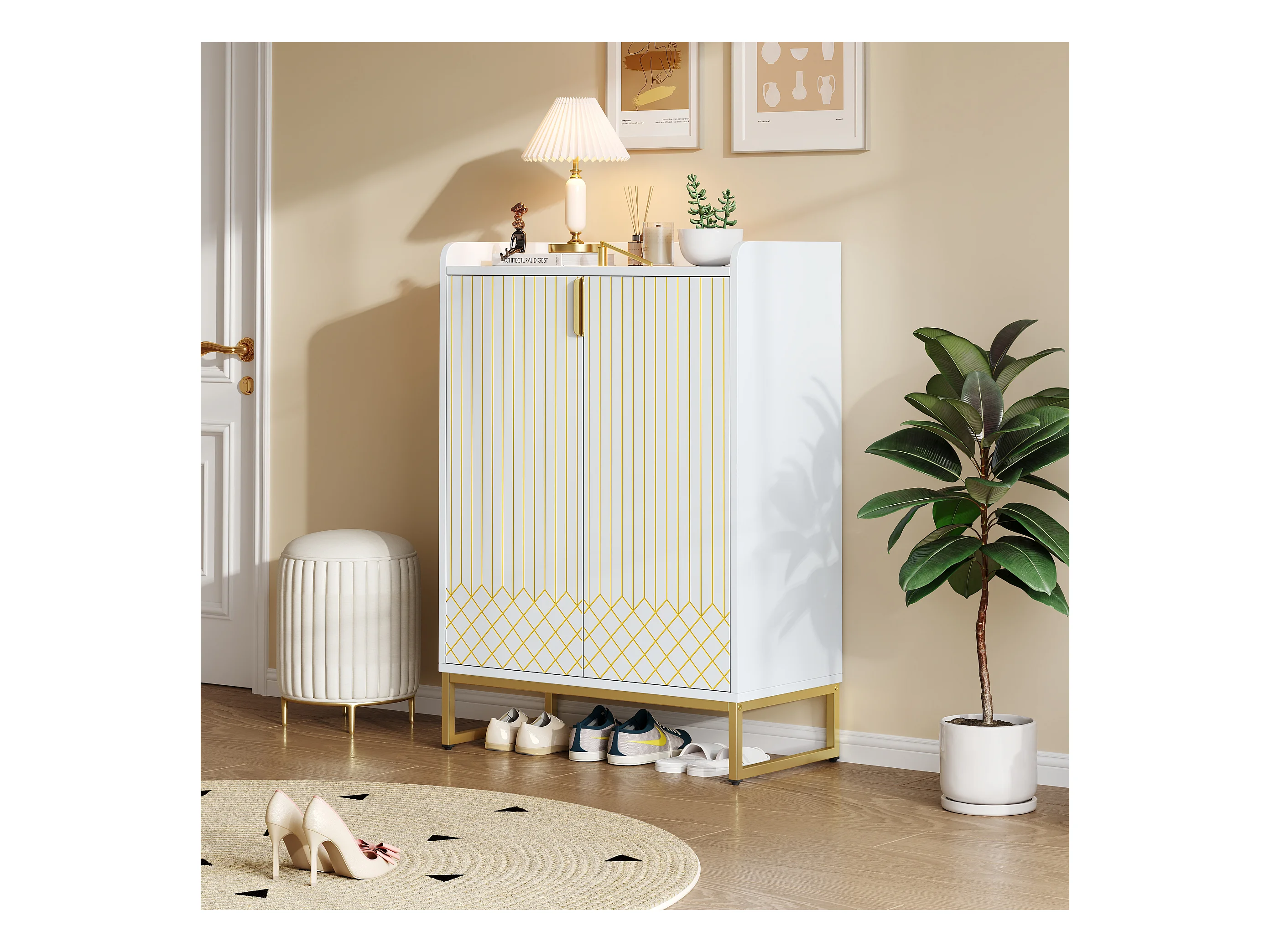 Móvel para sapatos moderno 75x37x105 cm - pés em metal - móvel de armazenamento - com 2 portas - branco