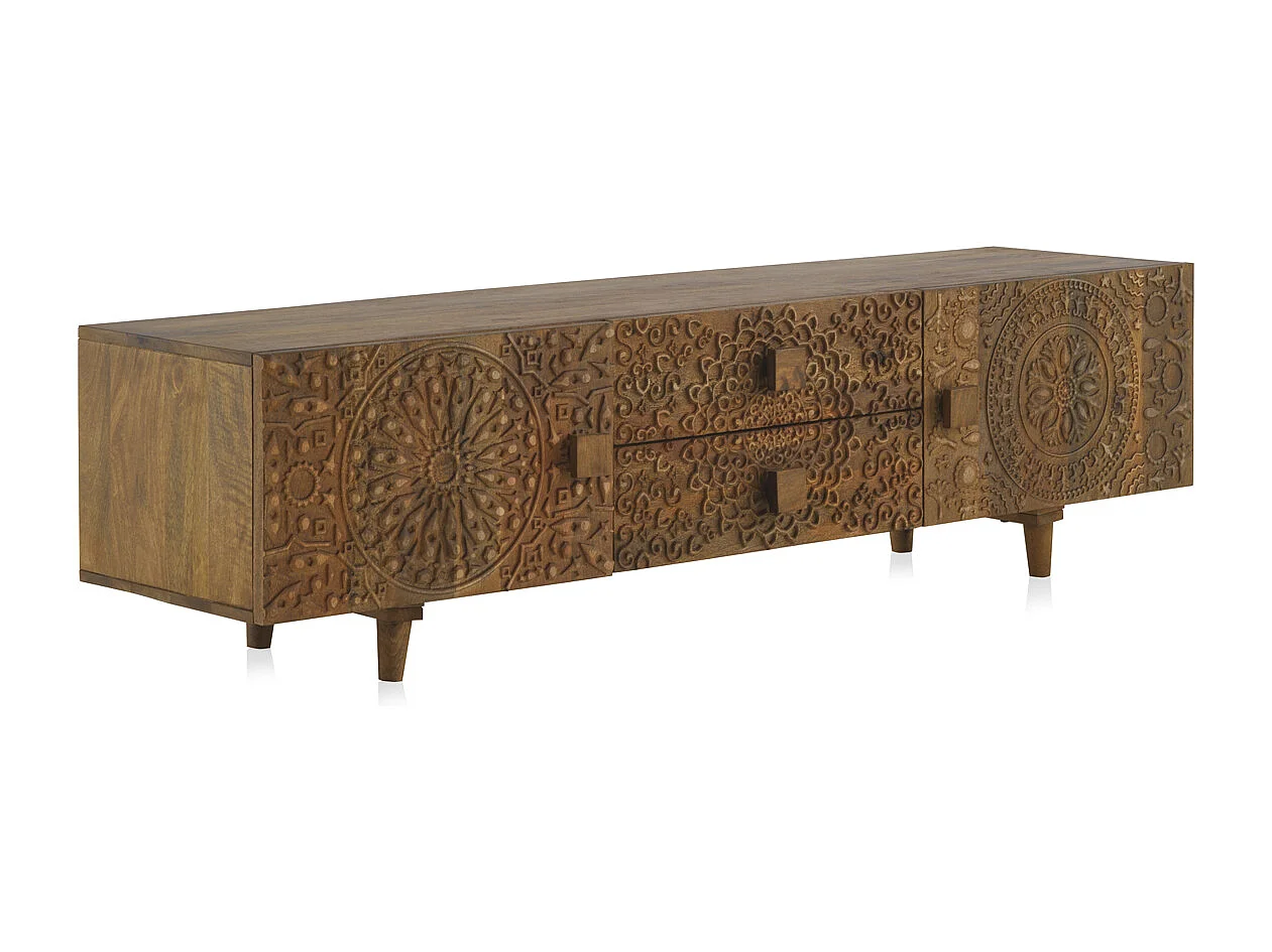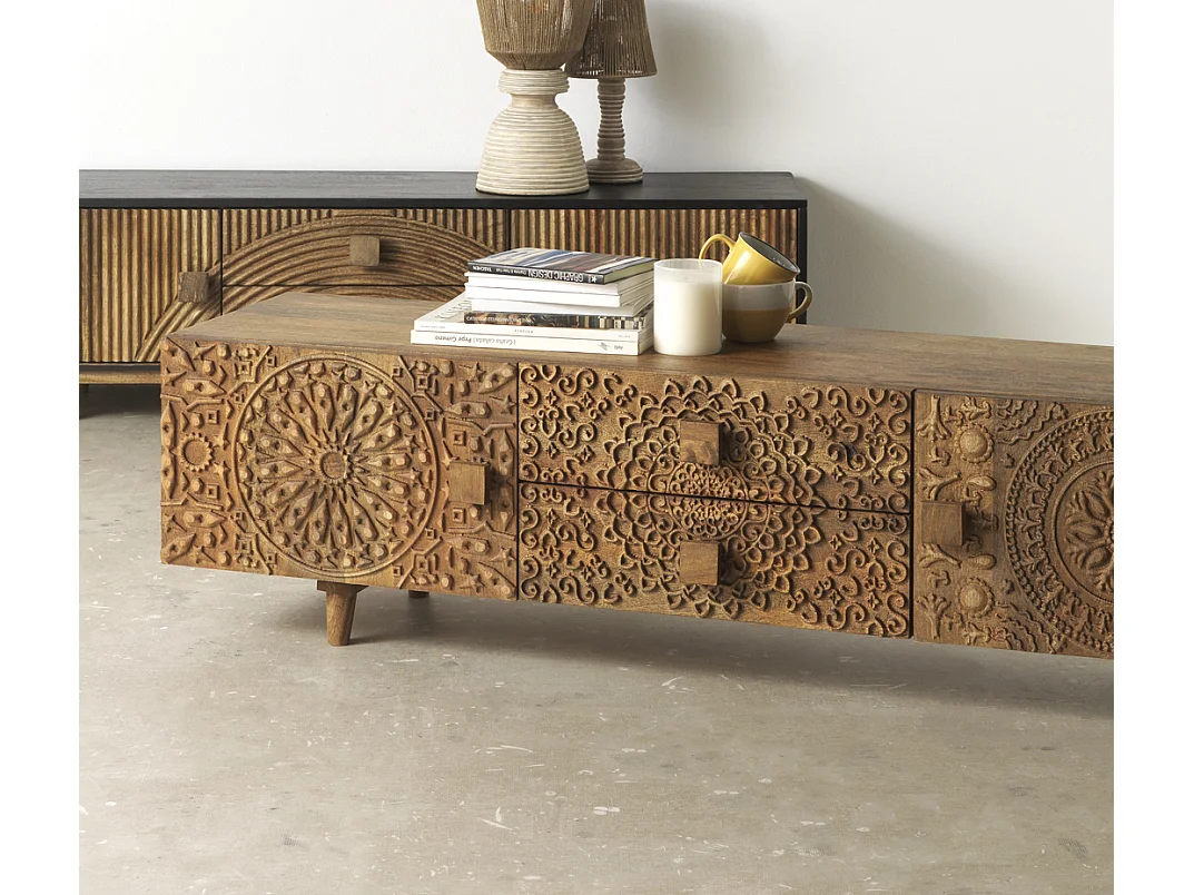 Móvel para televisão em madeira de manga maciça castanha
