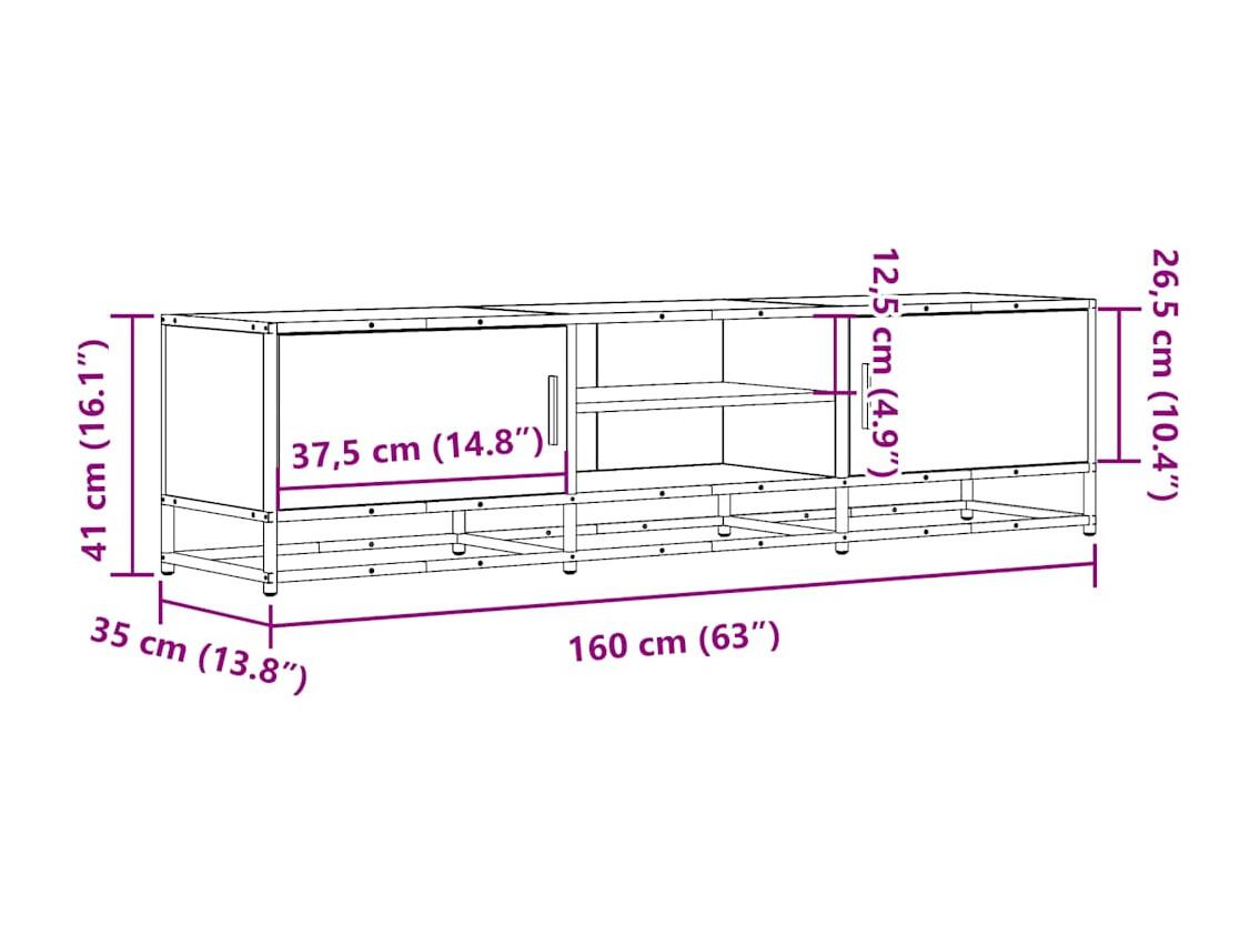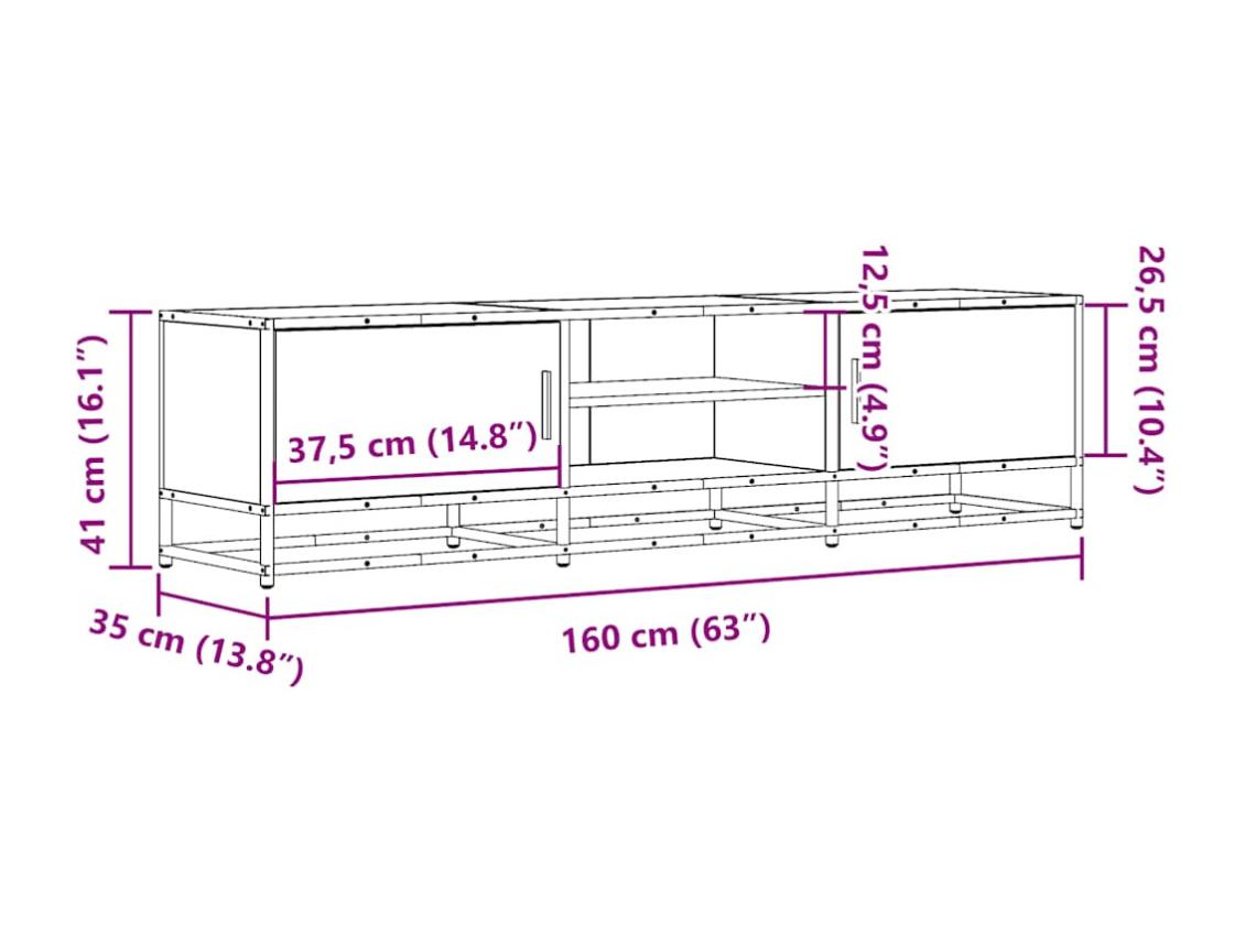Móvel para TV 160x35x41 cm derivados de madeira/metal preto