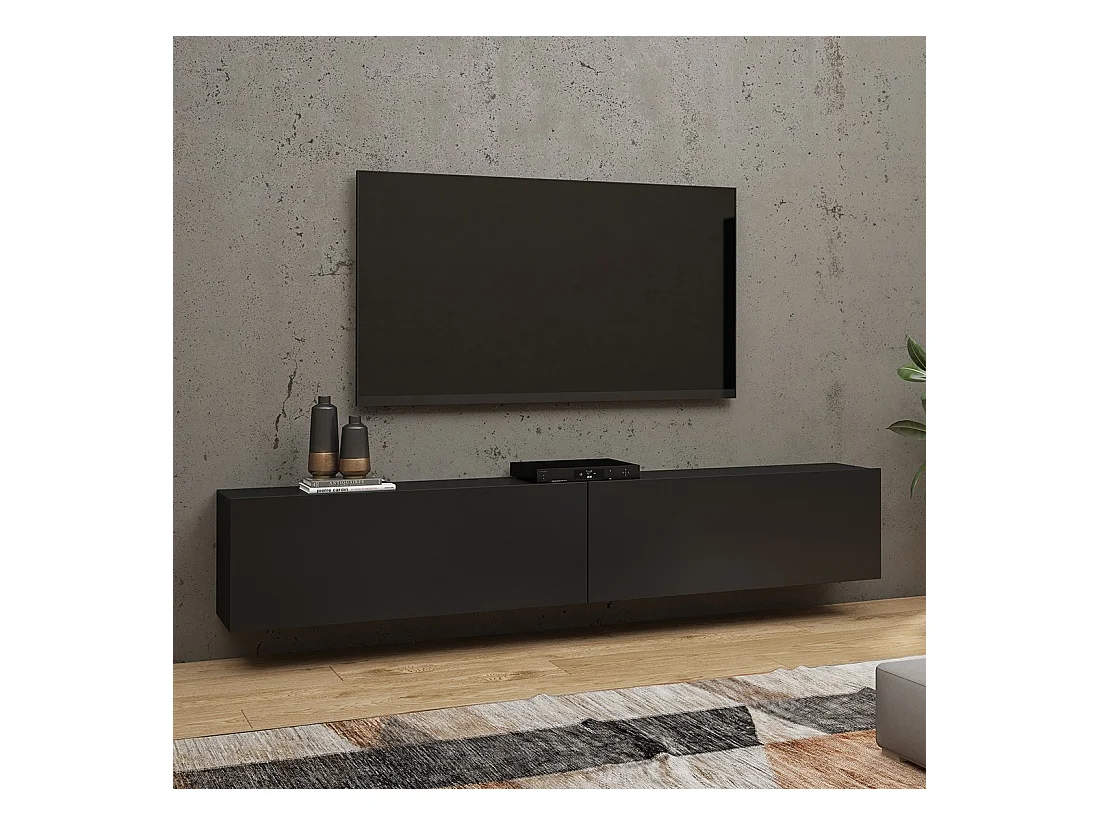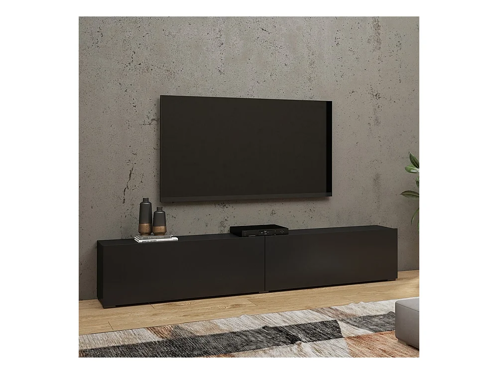 Móvel para TV 200cm Coleção COMET. Cor preta. 2 portas basculantes.
