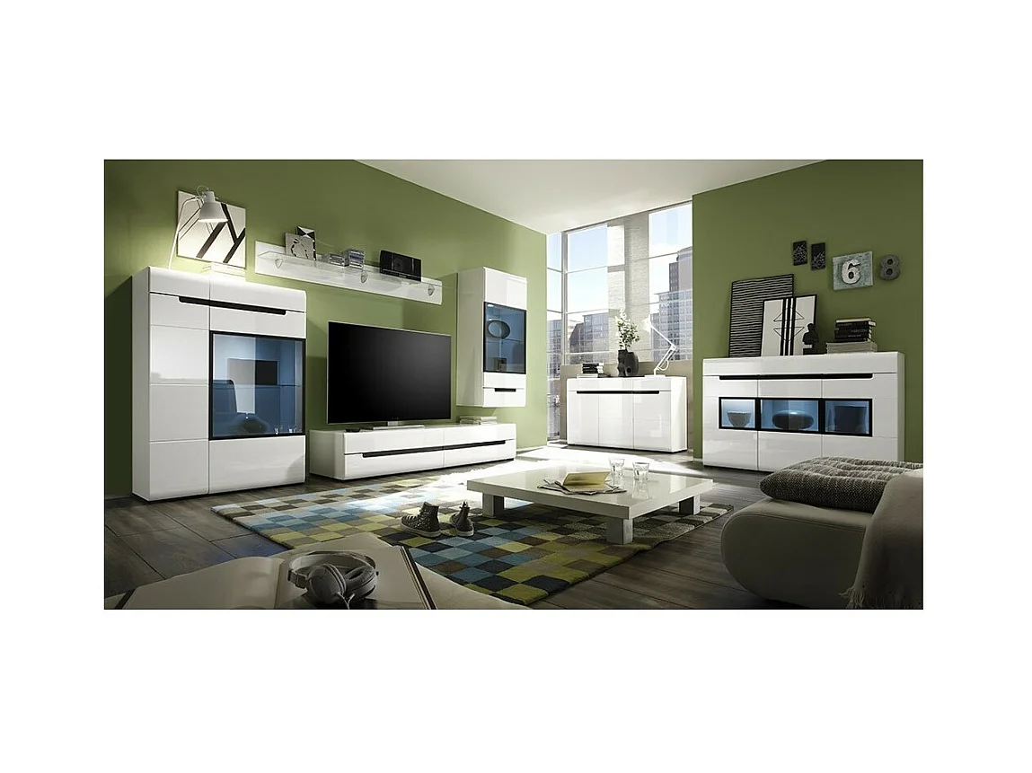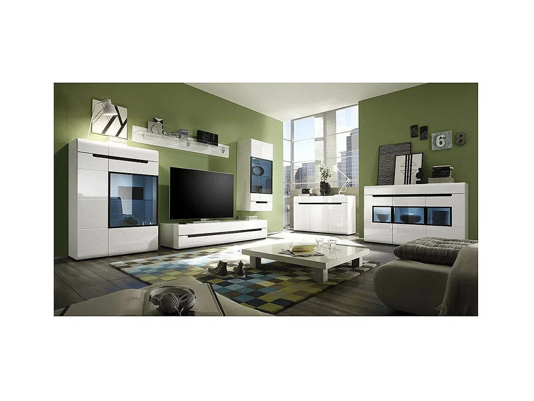 Móvel para TV 2 portas, coleção FOLOMI, cor branco laqueado brilhante