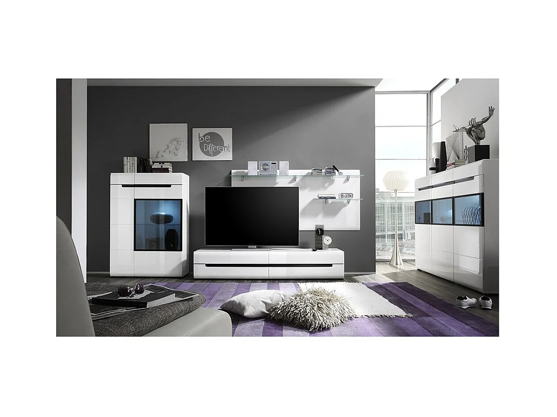 Meuble TV 180cm coloris blanc et noir collection HAVANA. Meuble design avec 3 portes et 3 tiroirs.