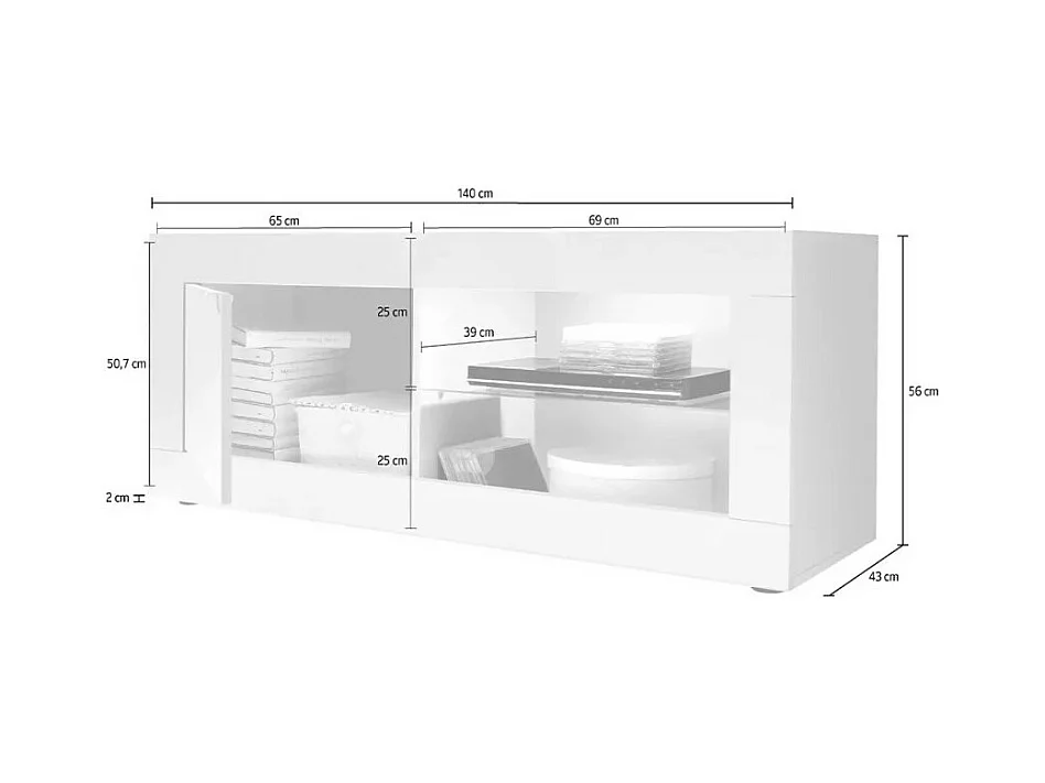 Móvel para TV com 2 portas, coleção CREAM, na cor branco brilhante laqueado, ideal para sua sala de estar moderna e na moda.