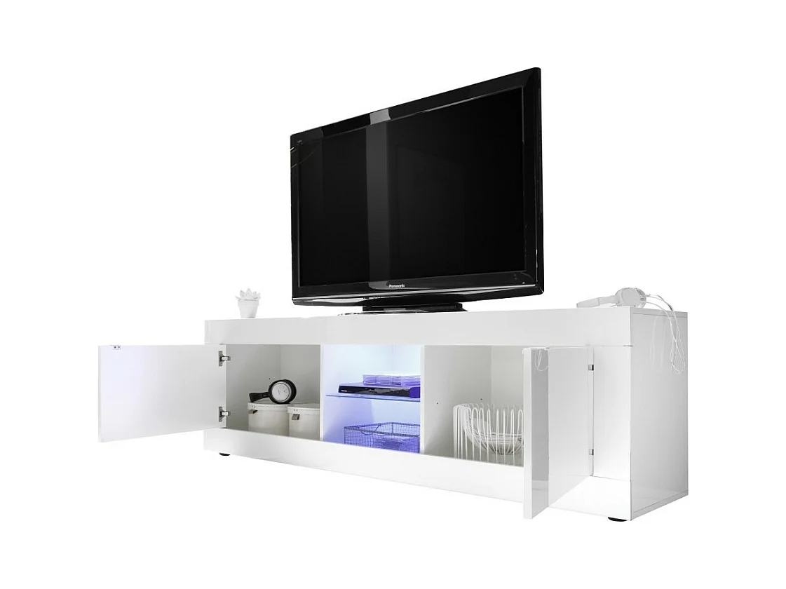 Móvel para TV 180cm Coleção LUCIA. 2 gavetas, cor branca, fachadas brilhantes. Estilo design.