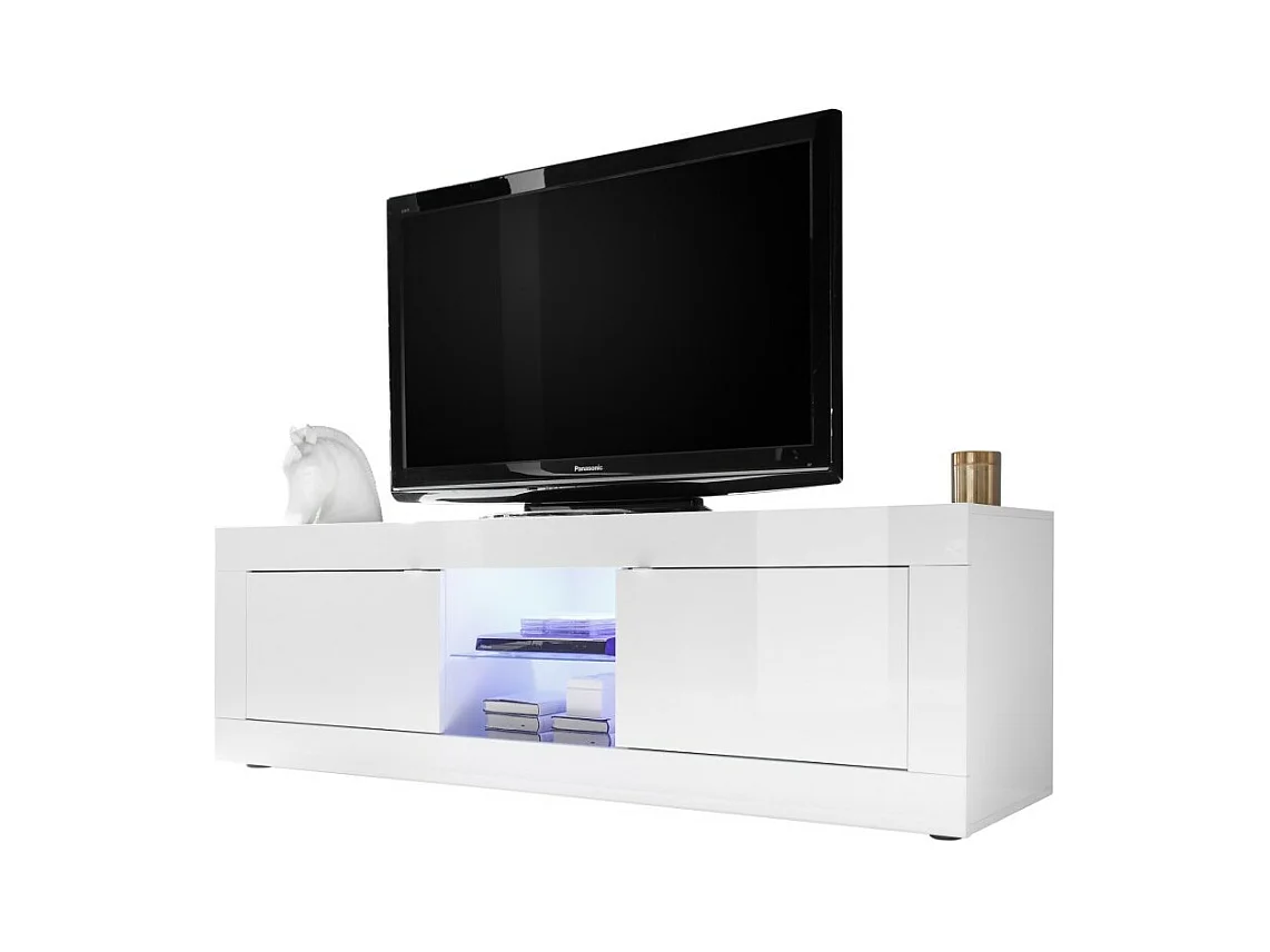 Móvel para TV com 2 portas, coleção CREAM, na cor branco brilhante laqueado, ideal para sua sala de estar moderna e na moda.