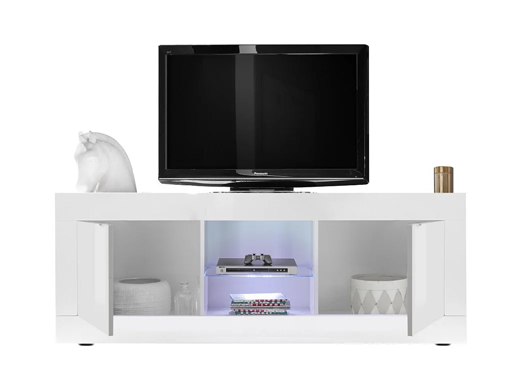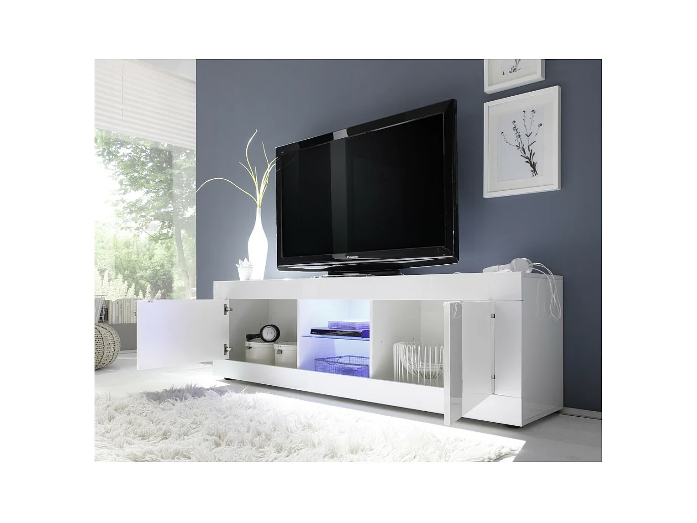 Móvel para TV com 2 portas, coleção CISA, cor branco brilhante laqueado.