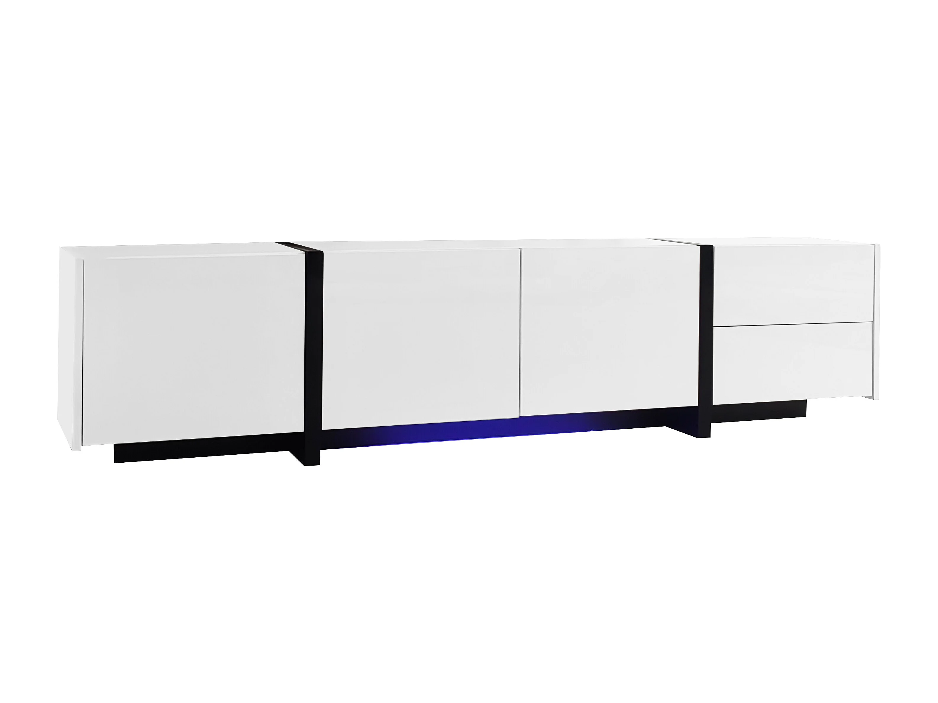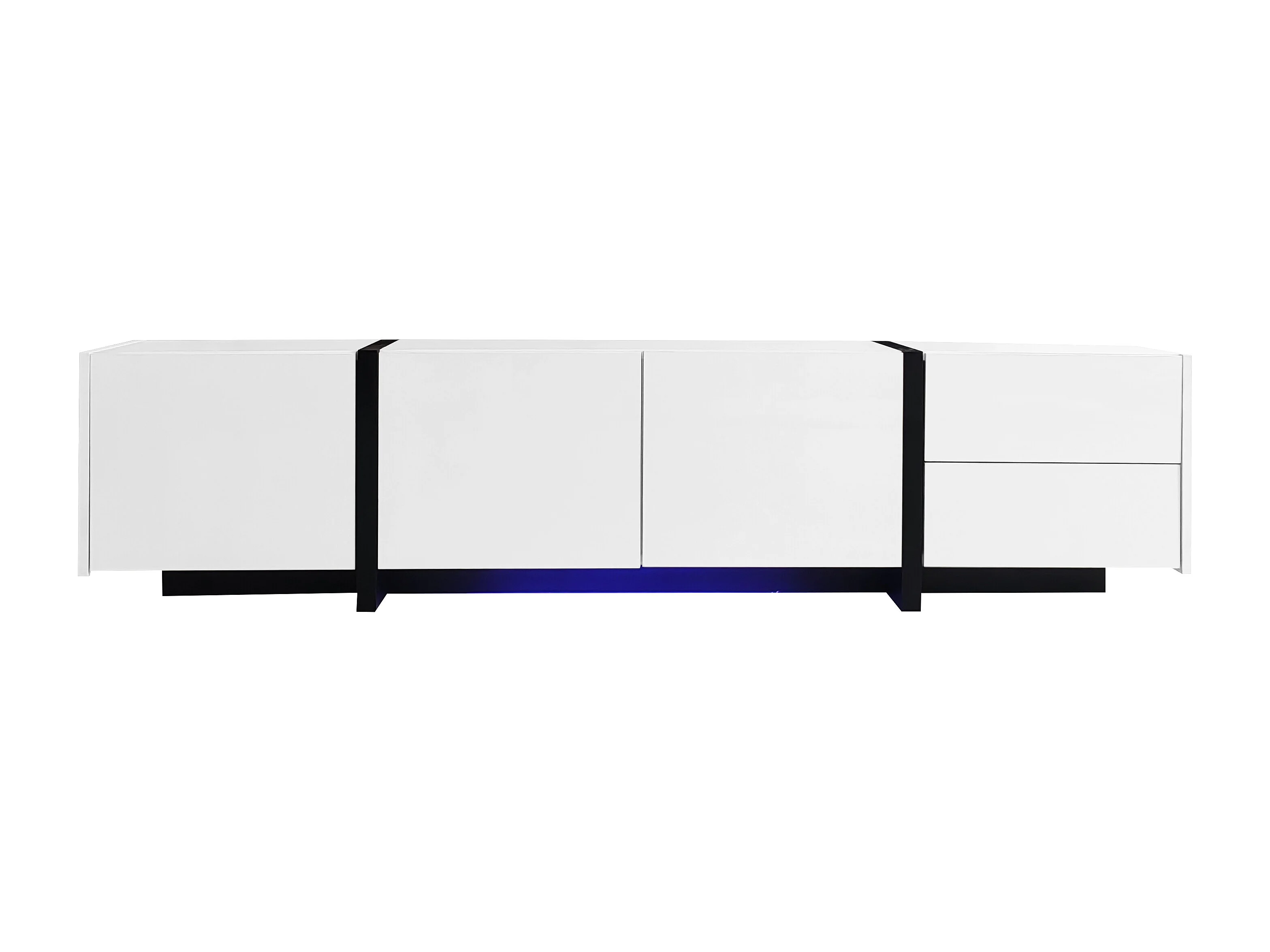 Móvel para TV com 4 gavetas, iluminação LED, acabamento lacado brilhante, branco