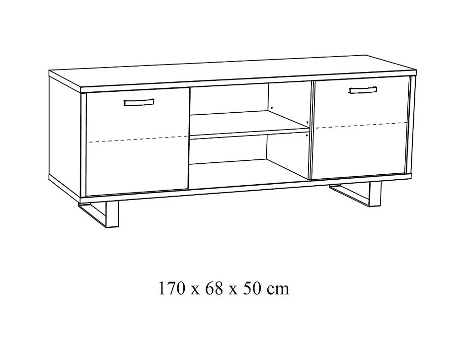 Móvel de TV 170cm cor carvalho claro com 2 gavetas e 2 nichos coleção NEWTON. Pés em metal.