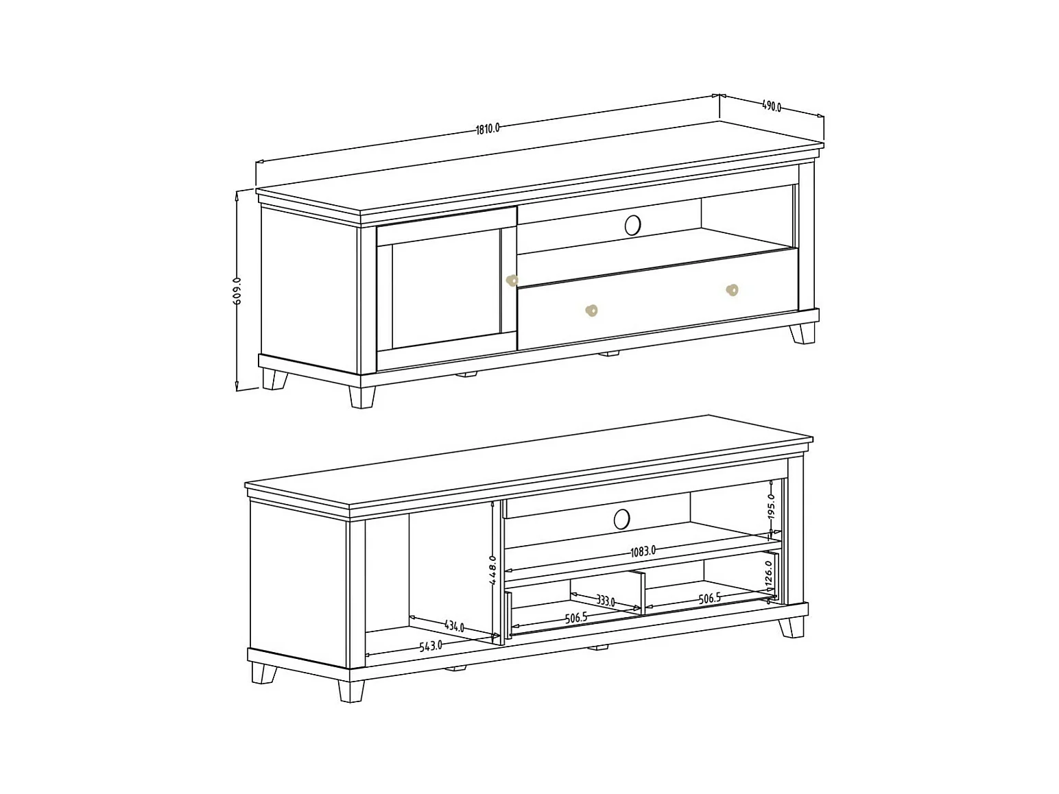 Móvel para TV 180cm. Coleção ASSIA. Cores verde e carvalho. 1 Porta e 1 gaveta.