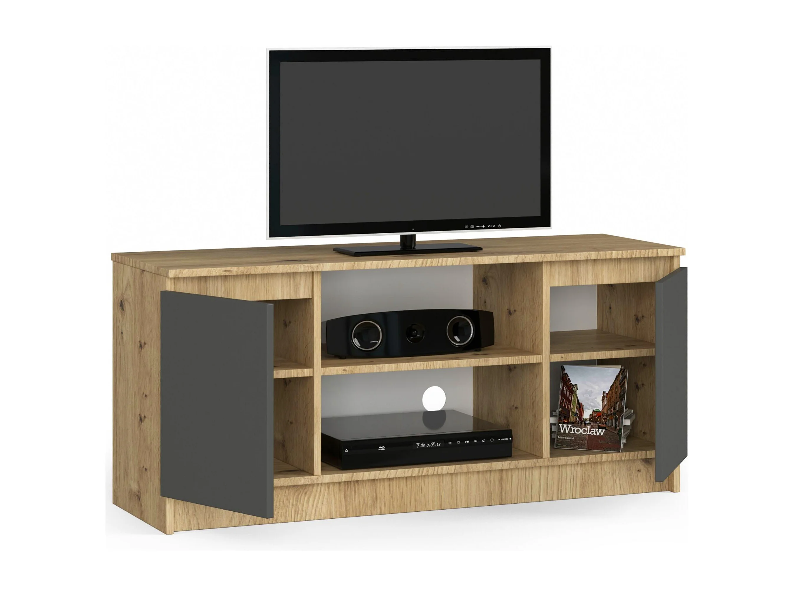 Móvel para TV em Madeira de Carvalho Artisan e Grafite, 120cm - 2 Portas, 2 Prateleiras, Design Contemporâneo