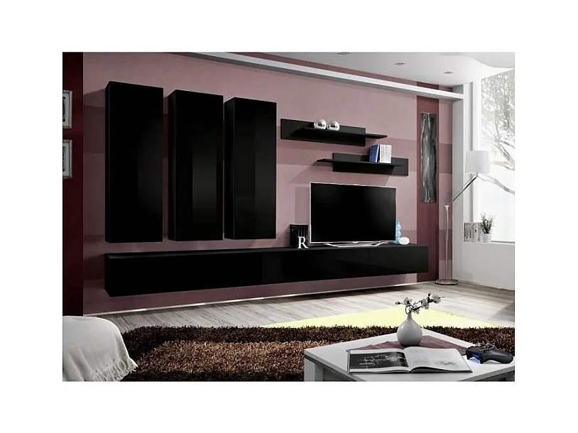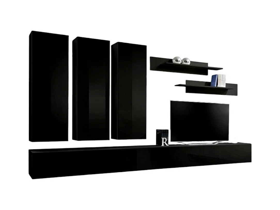 Conjunto de móveis para sala de estar SWITCH IV, design moderno, na cor preto brilhante.