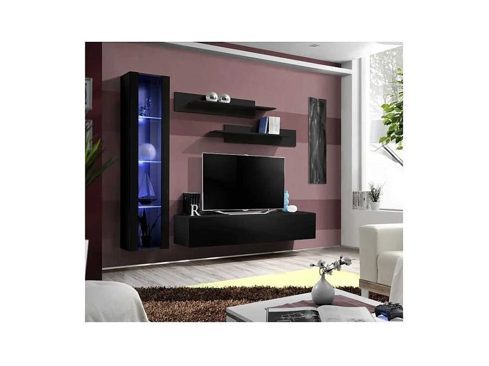 Móvel para TV FLY A5 design, cor preto brilhante + LED. Móvel suspenso moderno e na moda para a sua sala de estar.