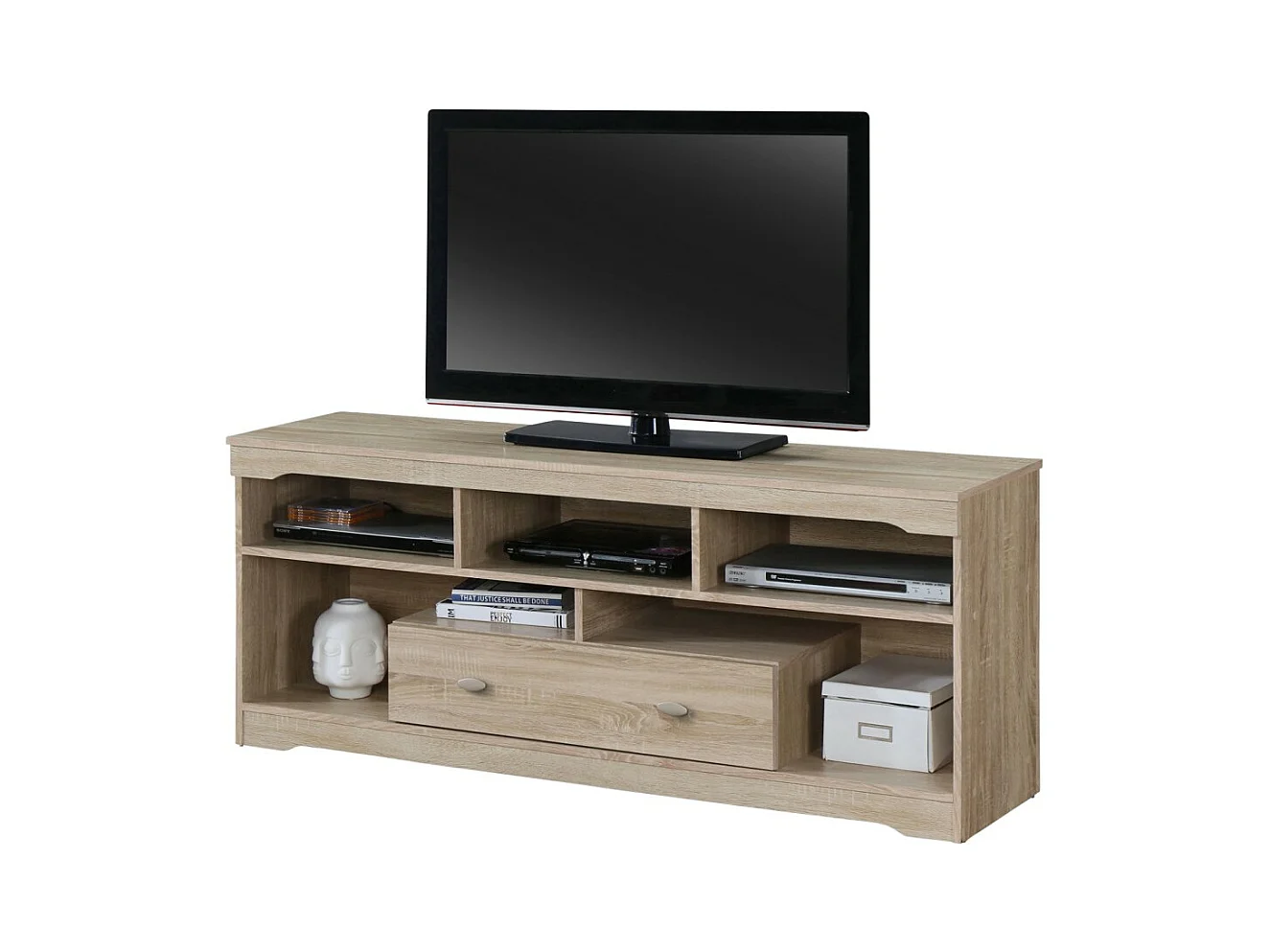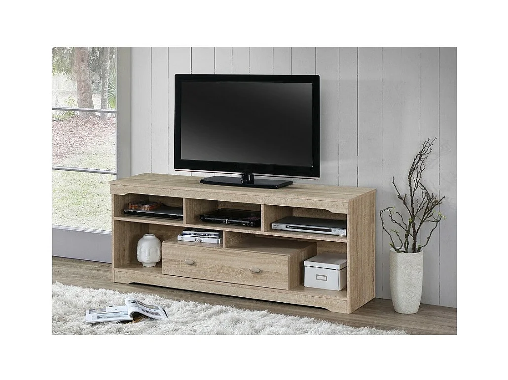 Móvel para TV MERSIN 150 cm com 1 gaveta e 5 nichos na cor Sonoma.