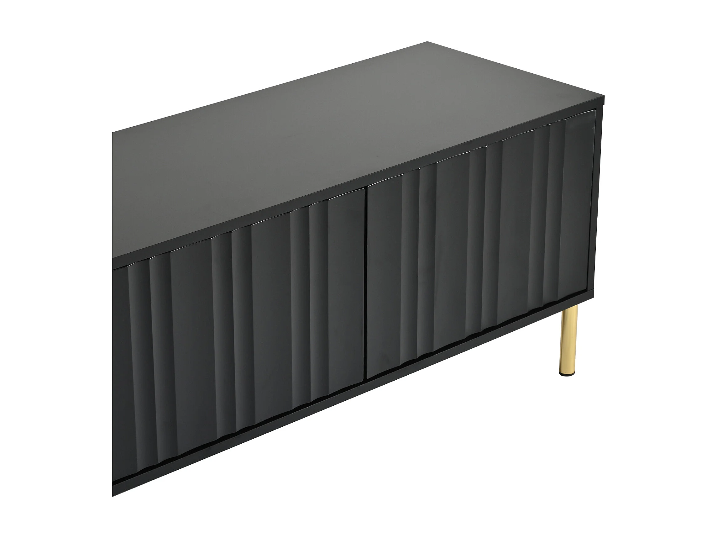 Móvel para TV preto, 190 × 38 × 48 cm – Pés dourados, portas com ranhuras, design moderno para sala de estar.