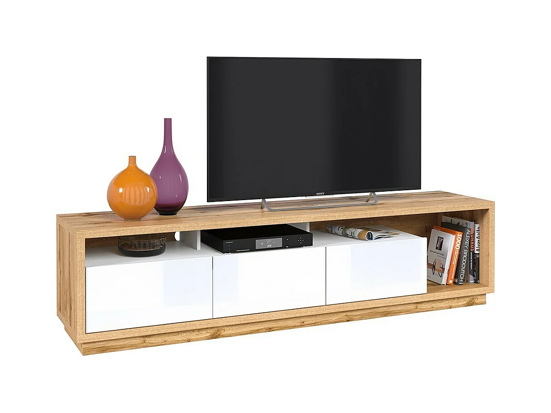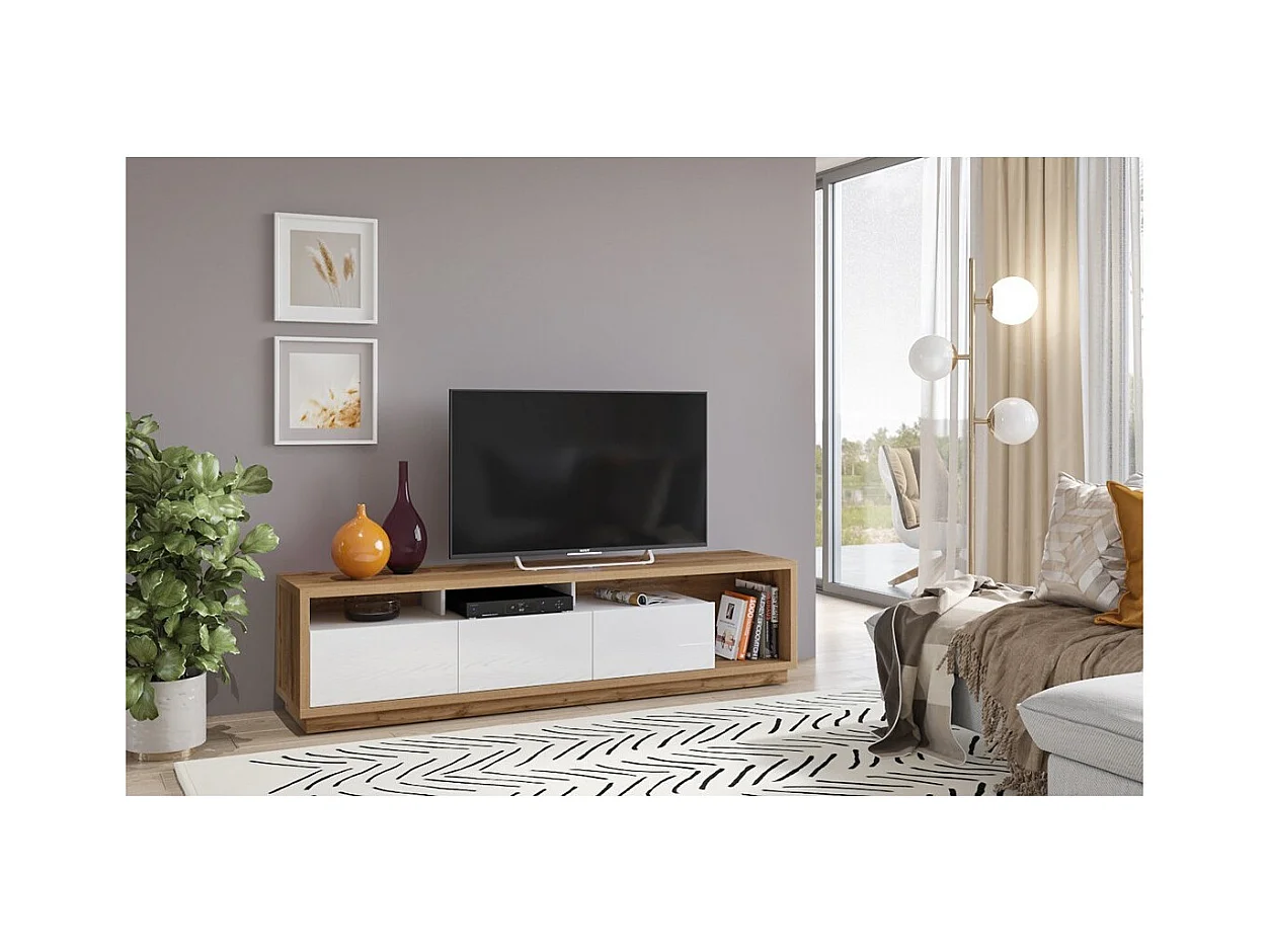 Móvel para TV XL 200cm coleção CLARA. Cor carvalho e branco brilhante.