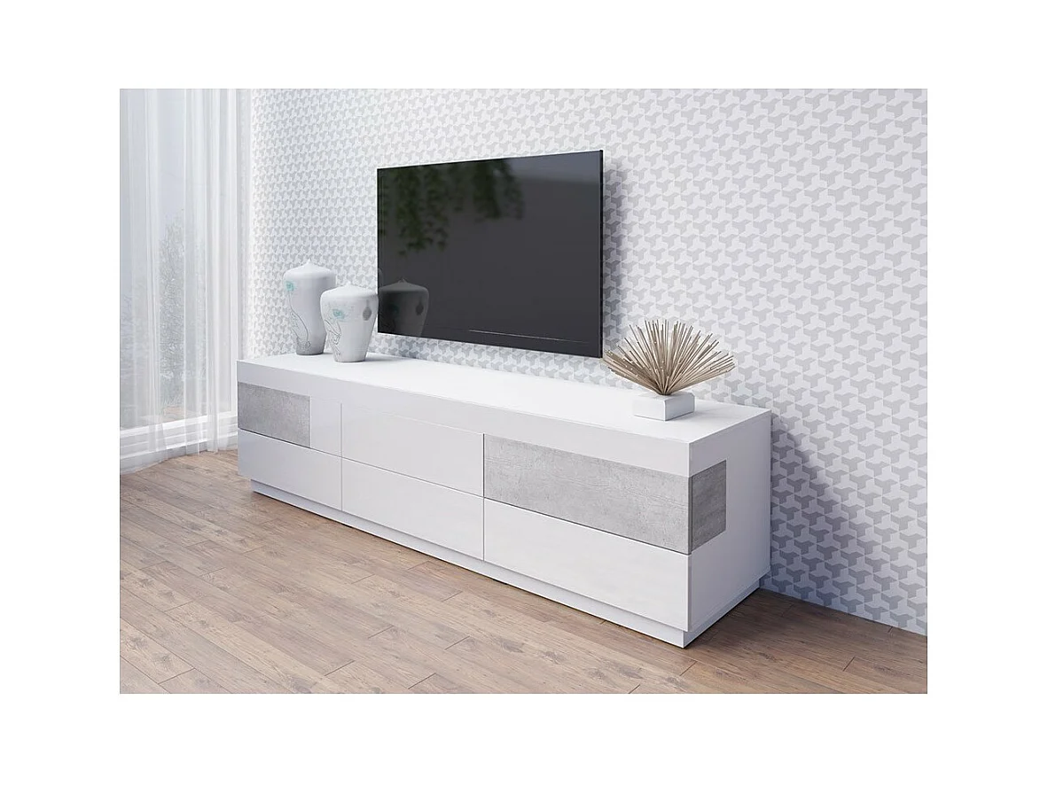 Móvel para TV XL design 200cm coleção KILES. Cores branco e cinza.