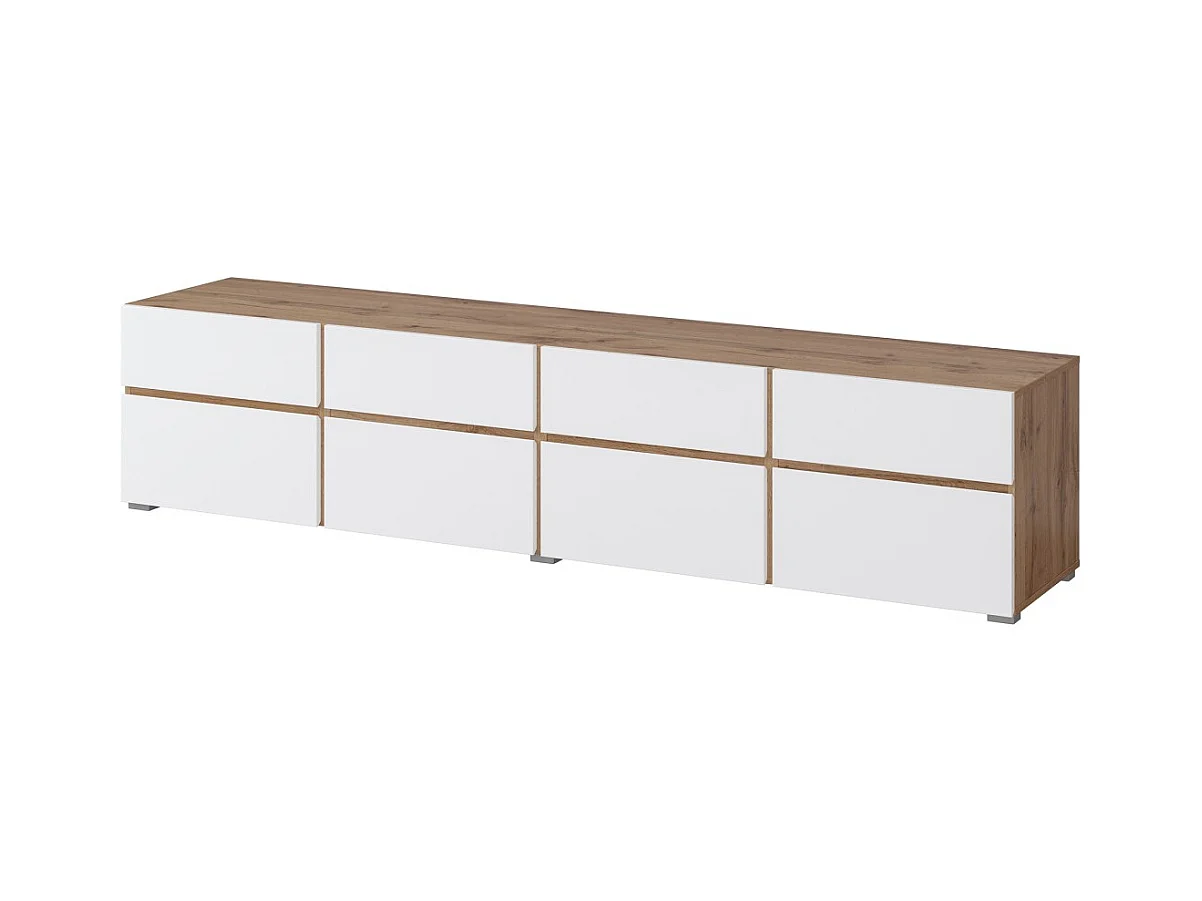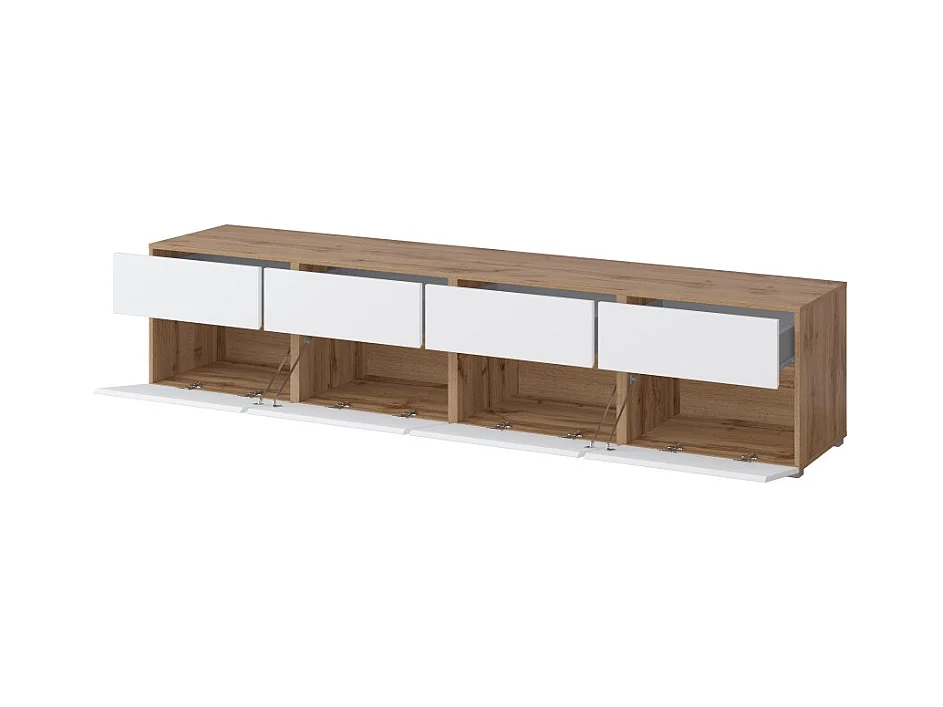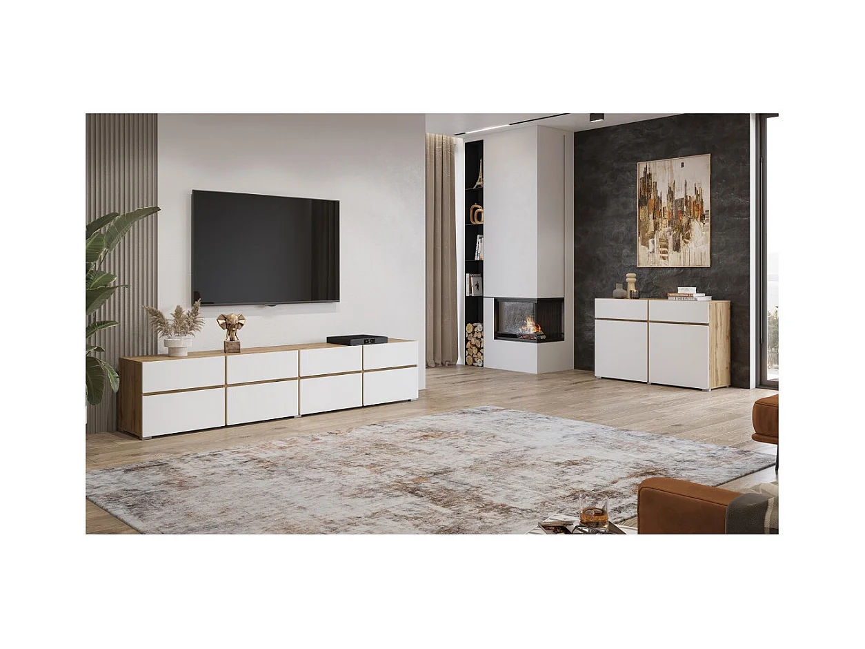 Móvel para TV XL HAVANA – 225 cm – 4 portas abatíveis e 4 gavetas – Carvalho e branco – Design moderno