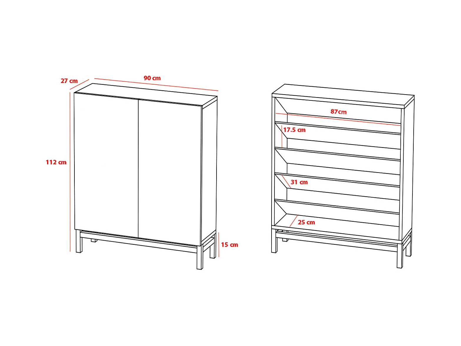Sapateiro/Móvel organização - H87cm x L90cm x P27cm nogueira clara pernas grafite - Bergen