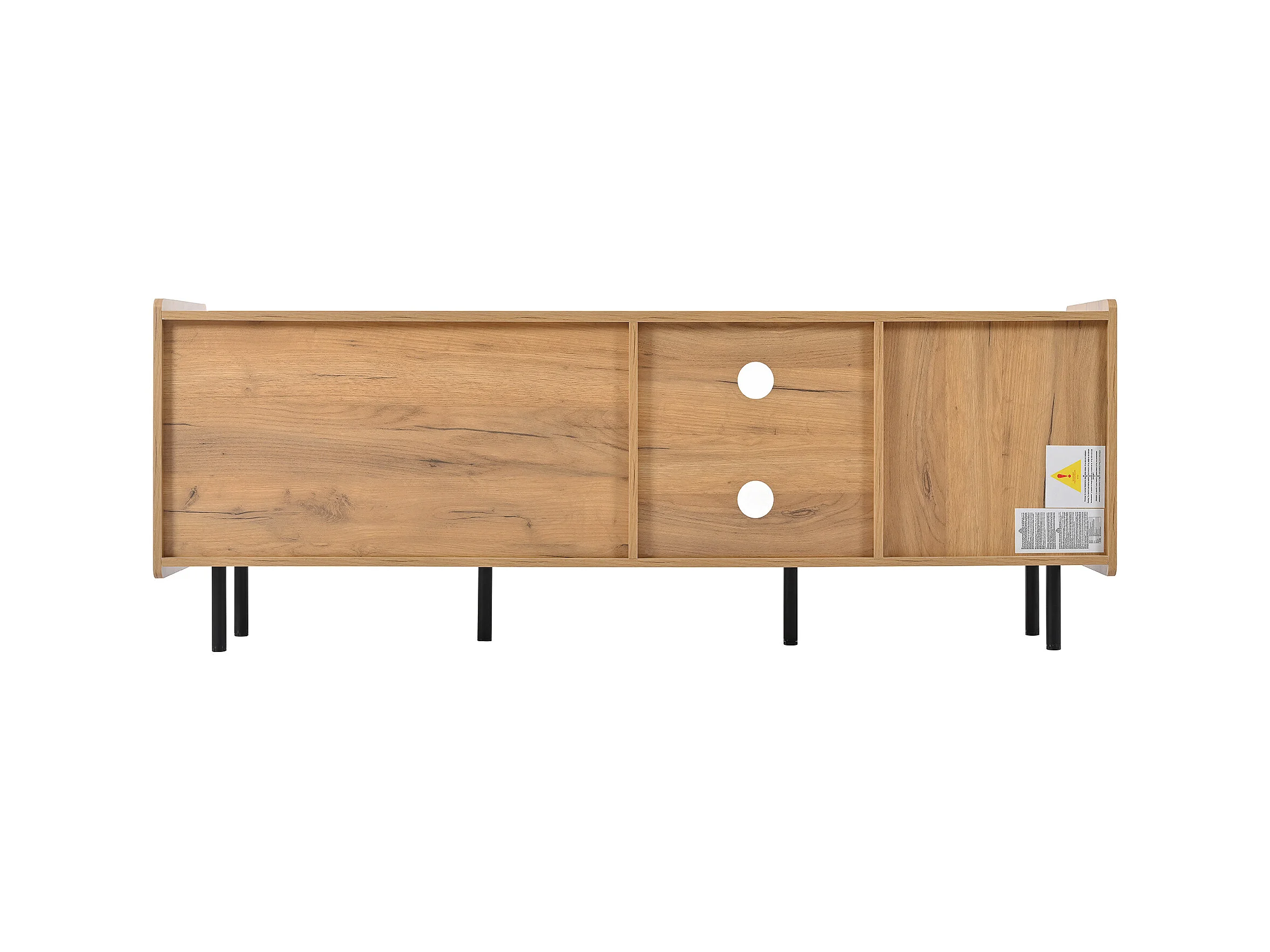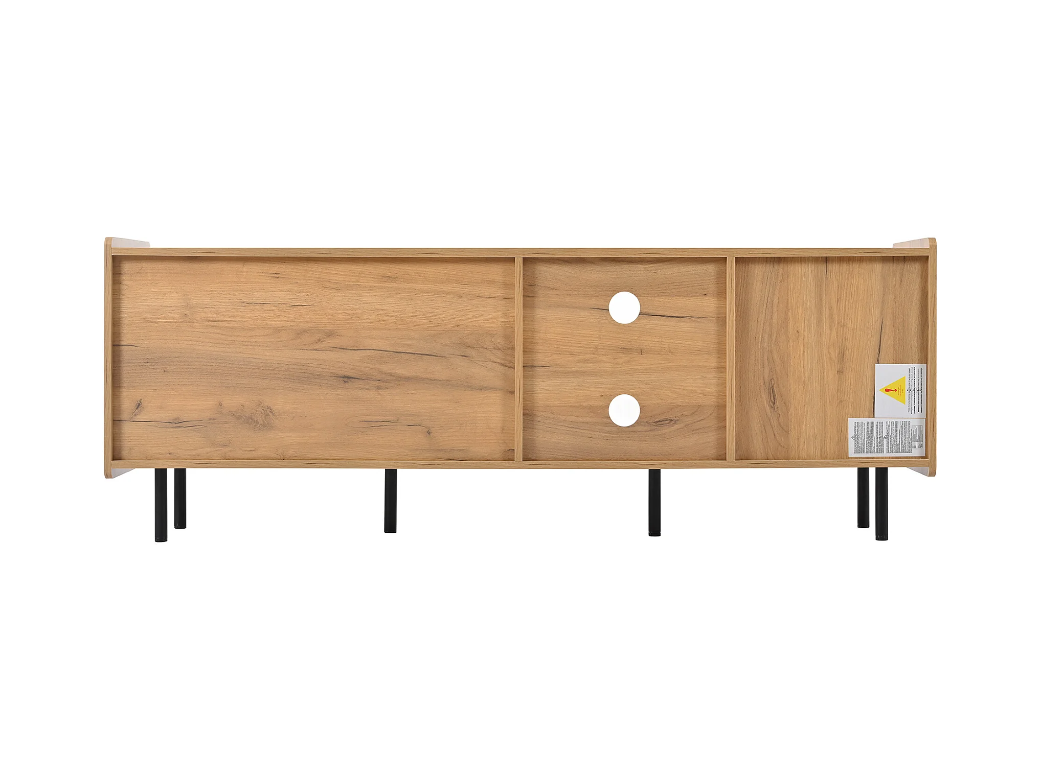 Móvel de TV com duas gavetas, mesa de TV, suporte de TV, painel baixo com duas portas de correr. Textura requintada. Preto e cor de madeira natural. A58/L160/P40 cm