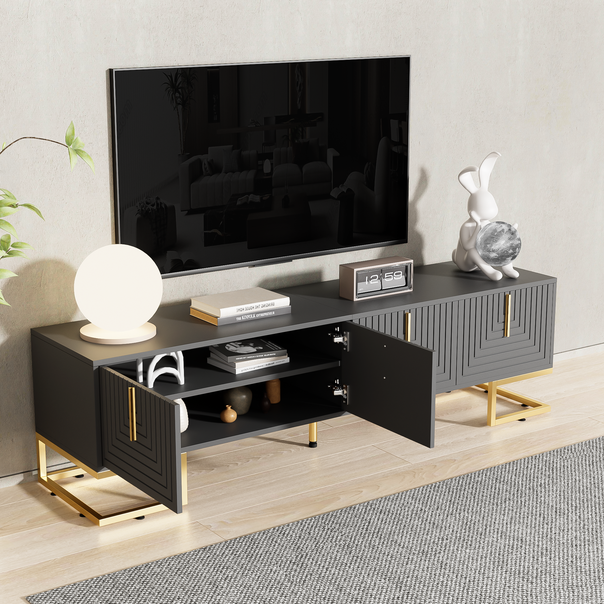 Móvel TV 170 cm MDF cinza preto com portas esculpidas pés dourados sala de estar moderna