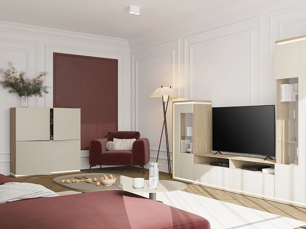 Móvel TV 2 gavetas Iria caxemira e madeira 160,1cm