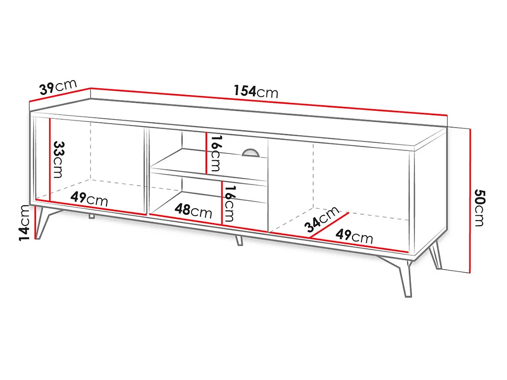 Móvel TV AMBIHOME JESS - Preto/Carvalho, C154xP39xA50cm