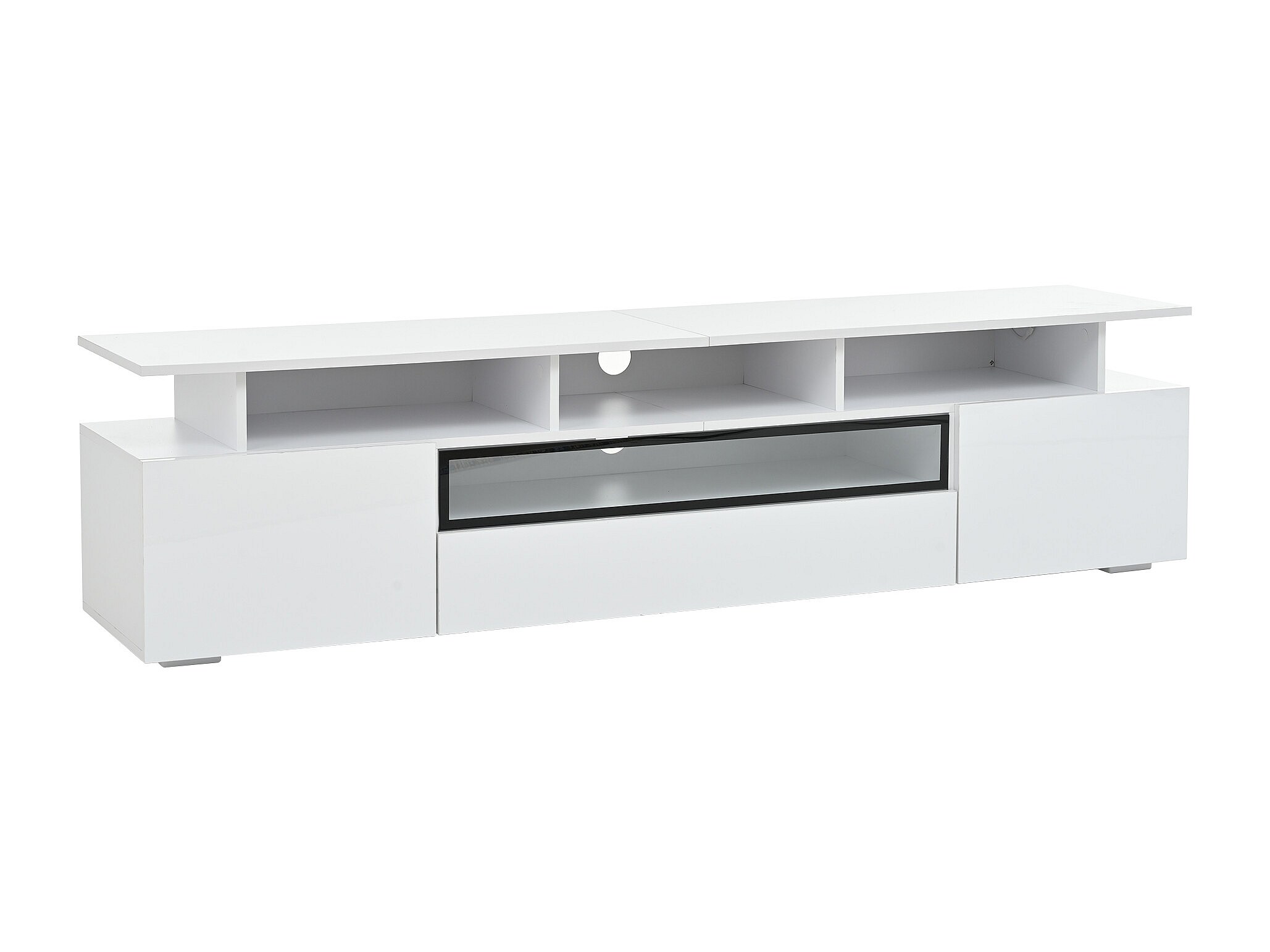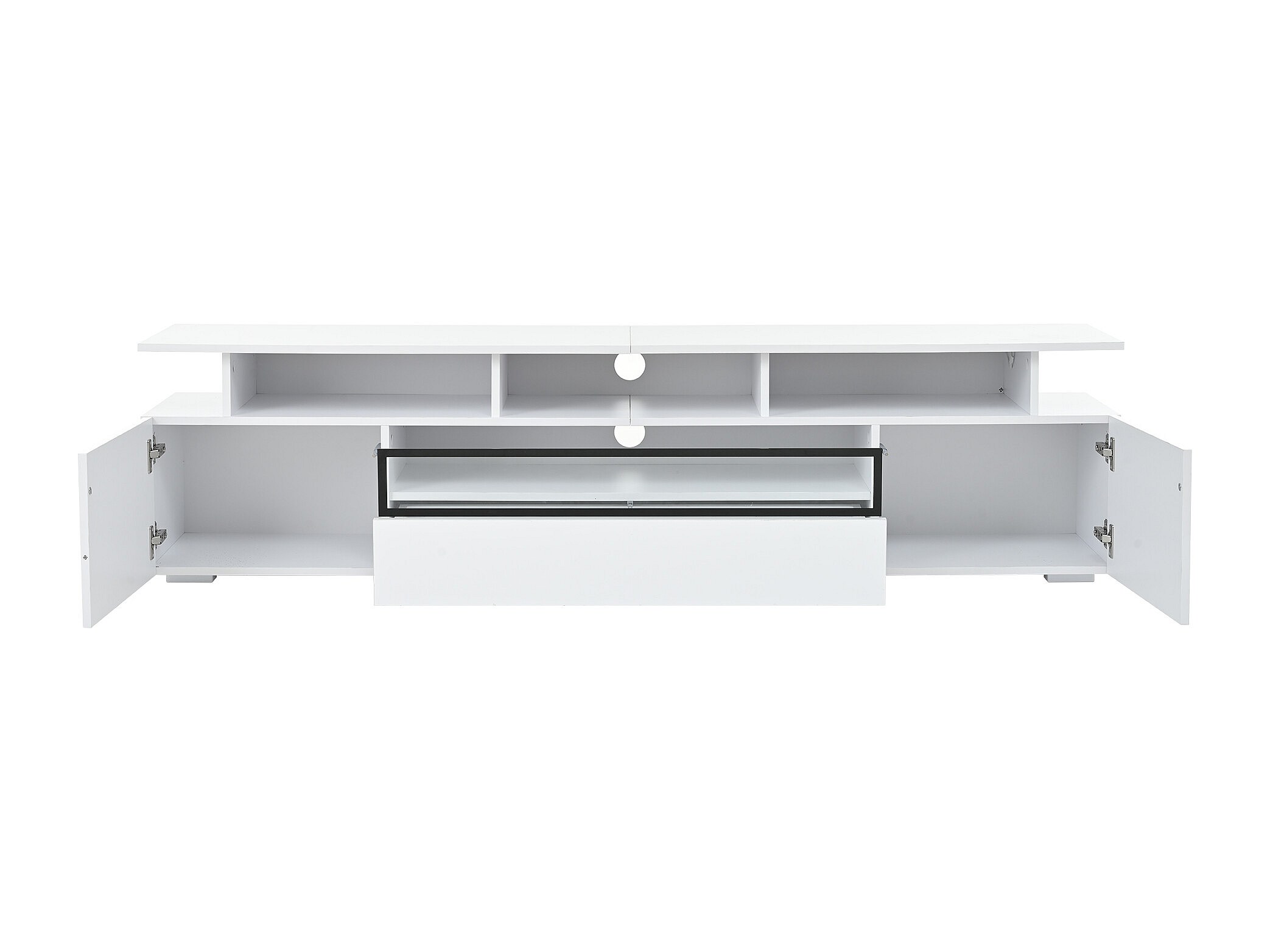 Móvel TV branco com 2 portas, LED e 1 gaveta, arrumação multicamada 180x38x45cm