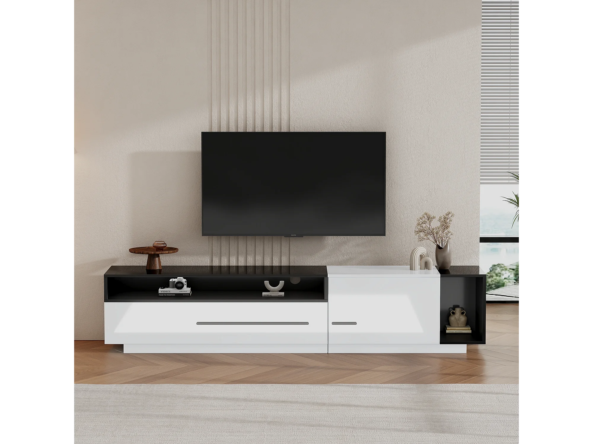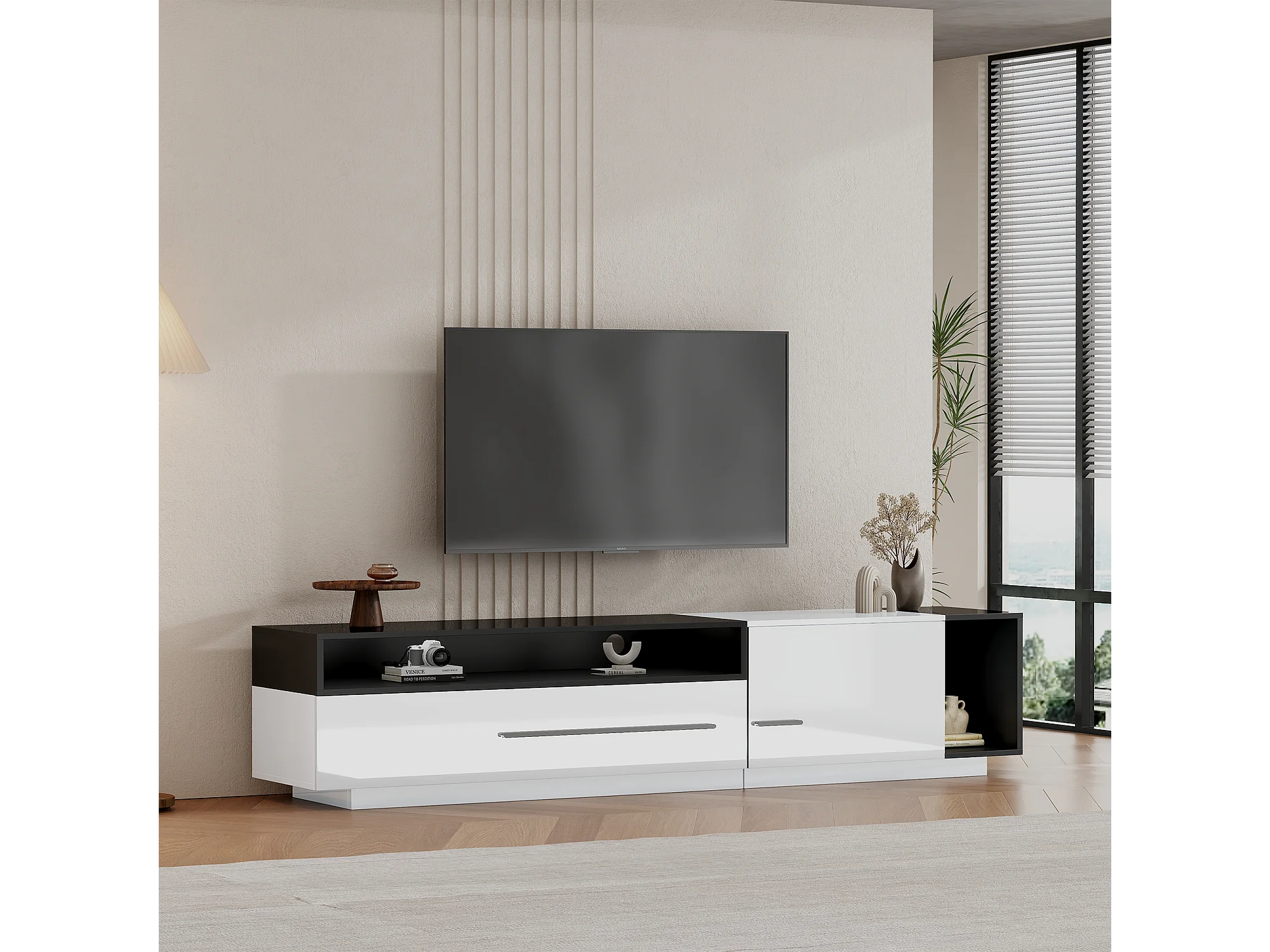 Móvel TV brilhante com 1 porta e 1 gaveta - 170 x 38 x 42 cm - Aglomerado - Branco e preto