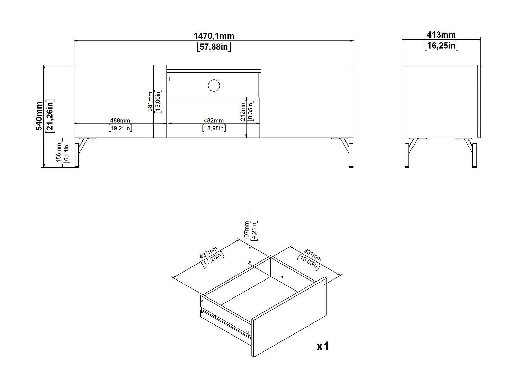 Móvel TV Ddtolo, Aparador sala, Armário baixo para TV, Base de parede equipada, 147x41 h54 cm, Carvalho e Preto