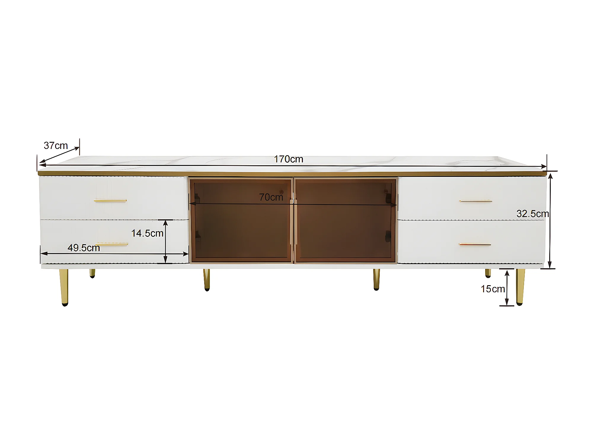 Móvel TV escandinavo 170cm com LED - 4 gavetas - folheado com padrão mármore - Branco