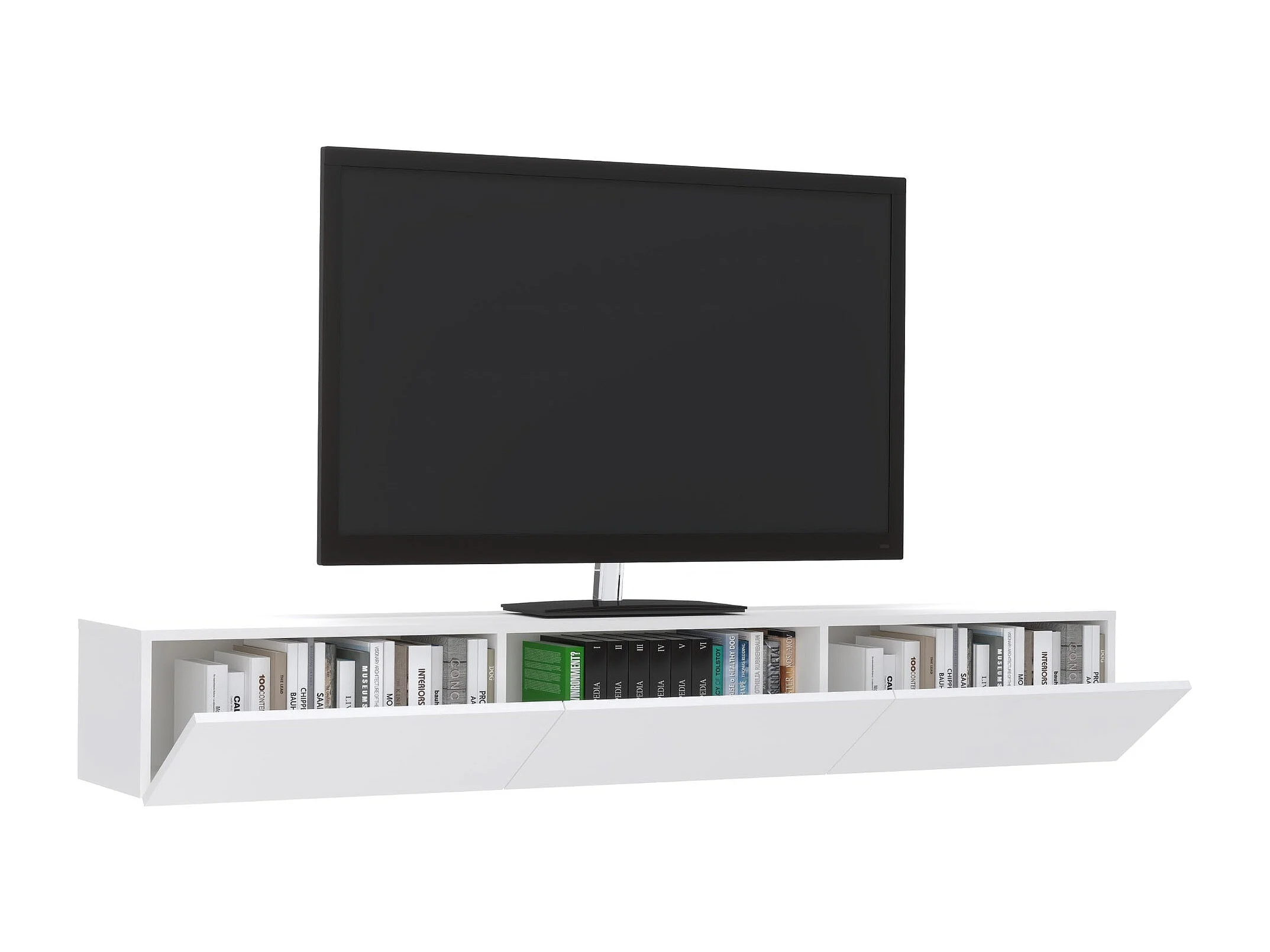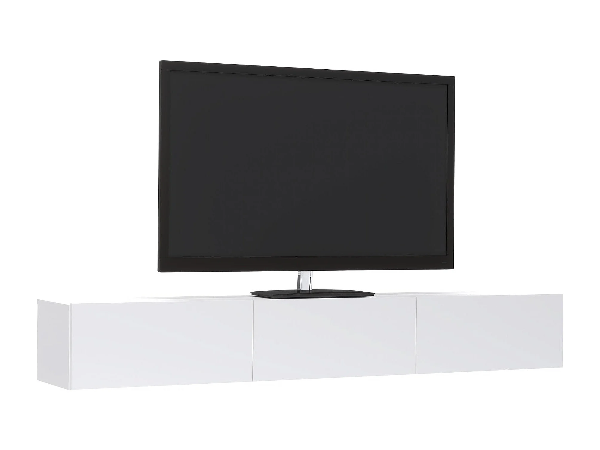 Móvel de TV moderno 180 cm para sala – 2 portas, sem puxadores, mate + brilho, de chão ou suspenso, branco / branco brilho