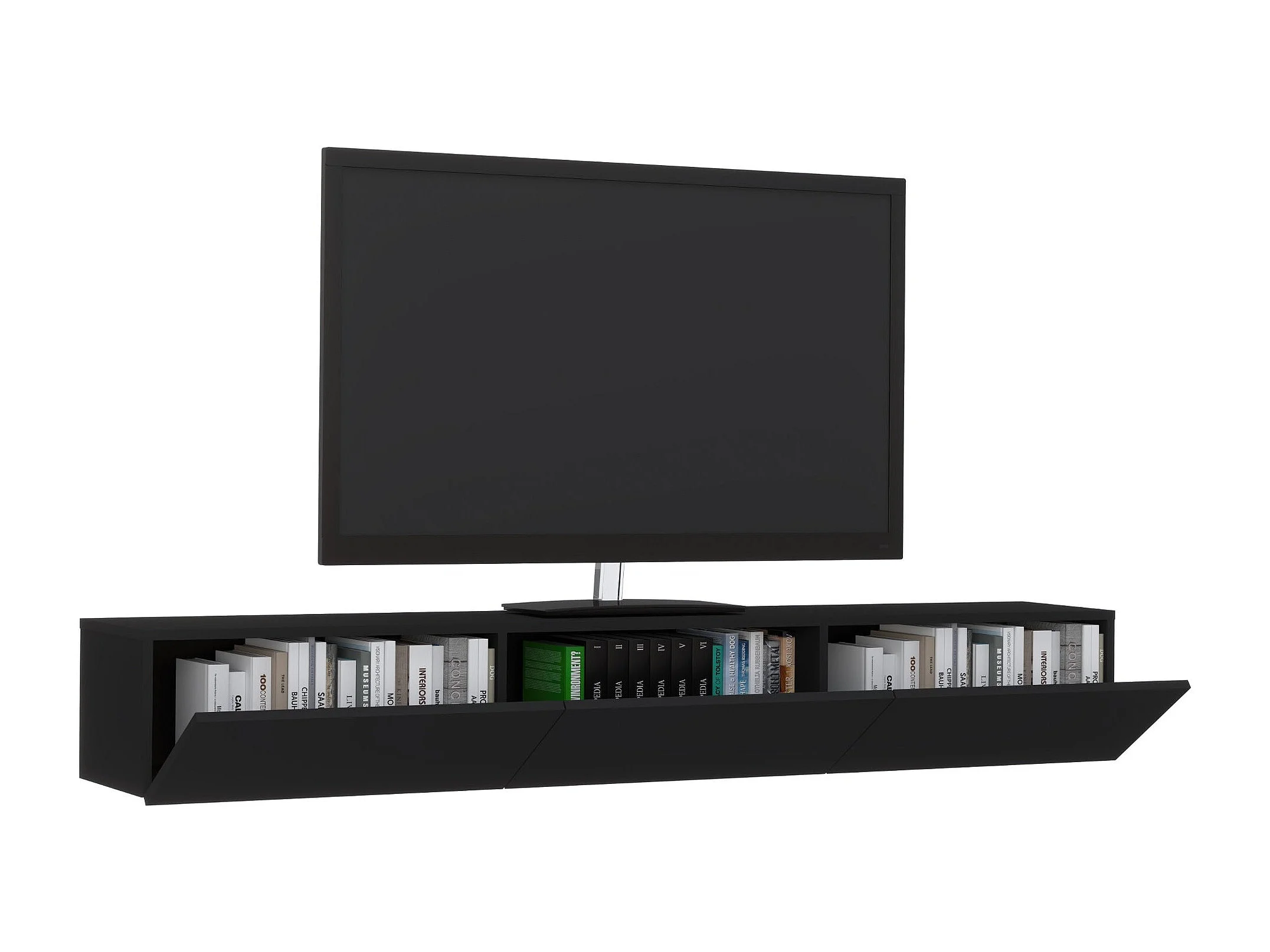 Móvel de TV moderno 180 cm para sala – 2 portas sem puxadores, acabamento mate, de chão ou suspenso, frentes em MDF preto mate