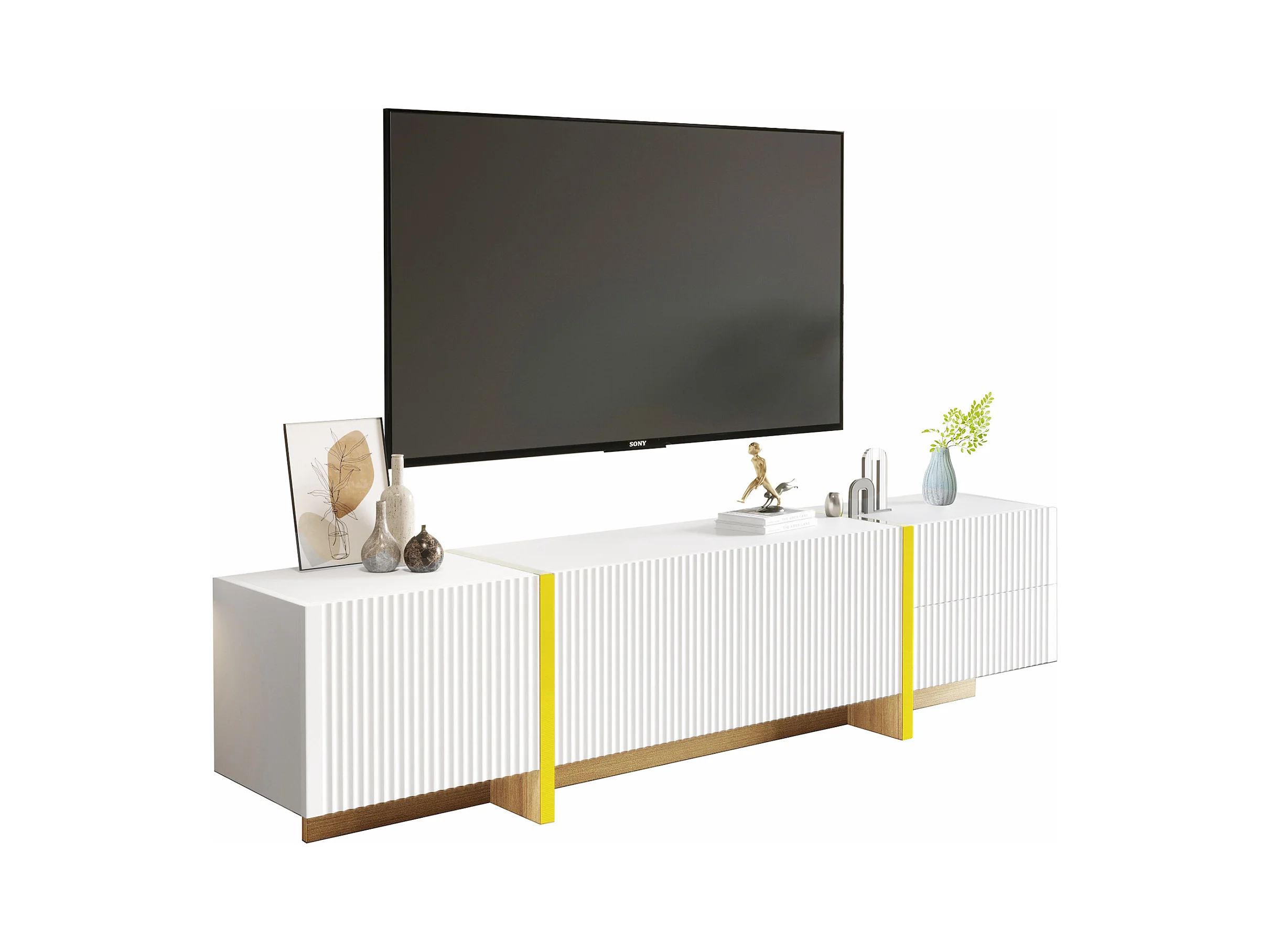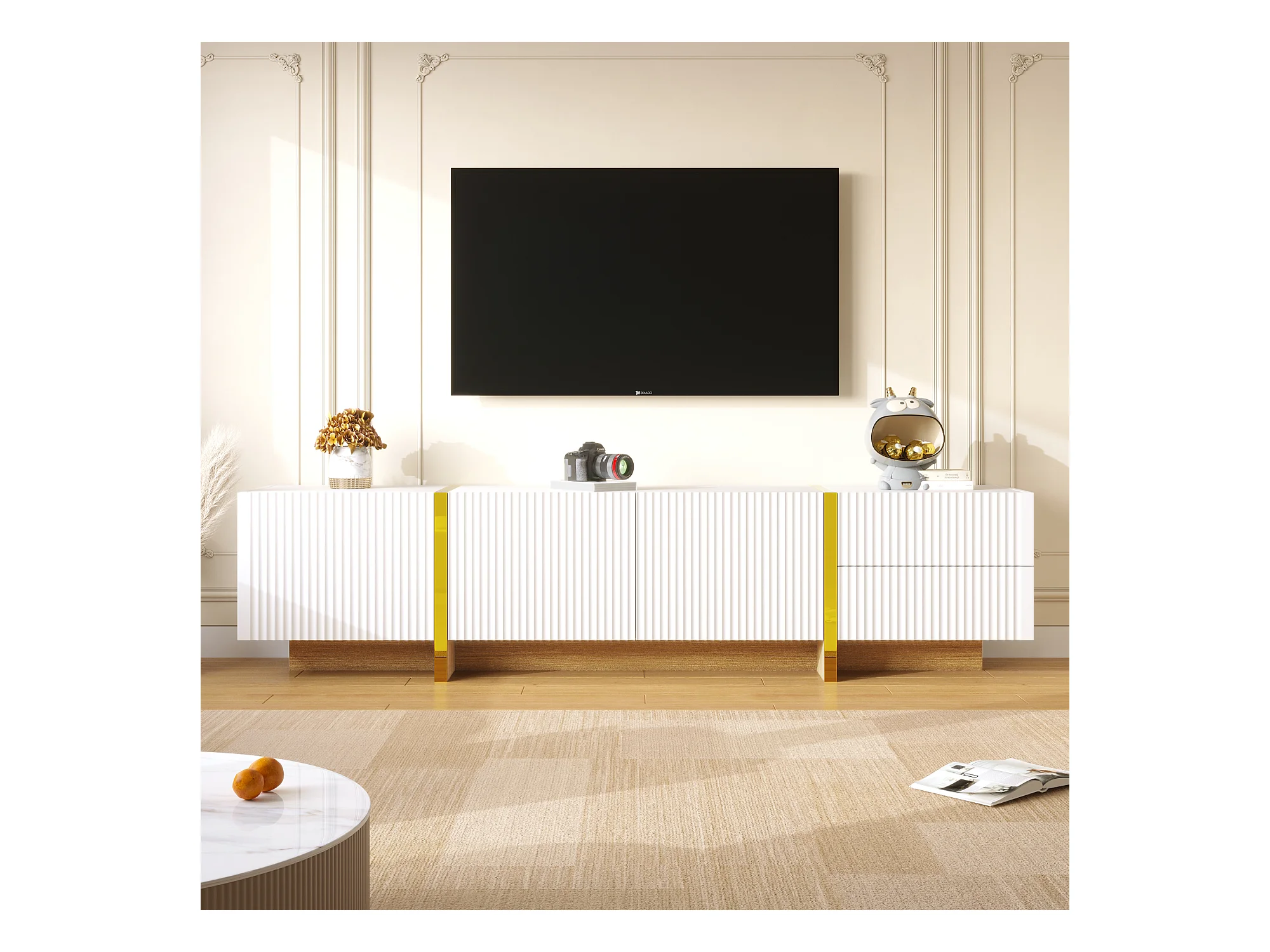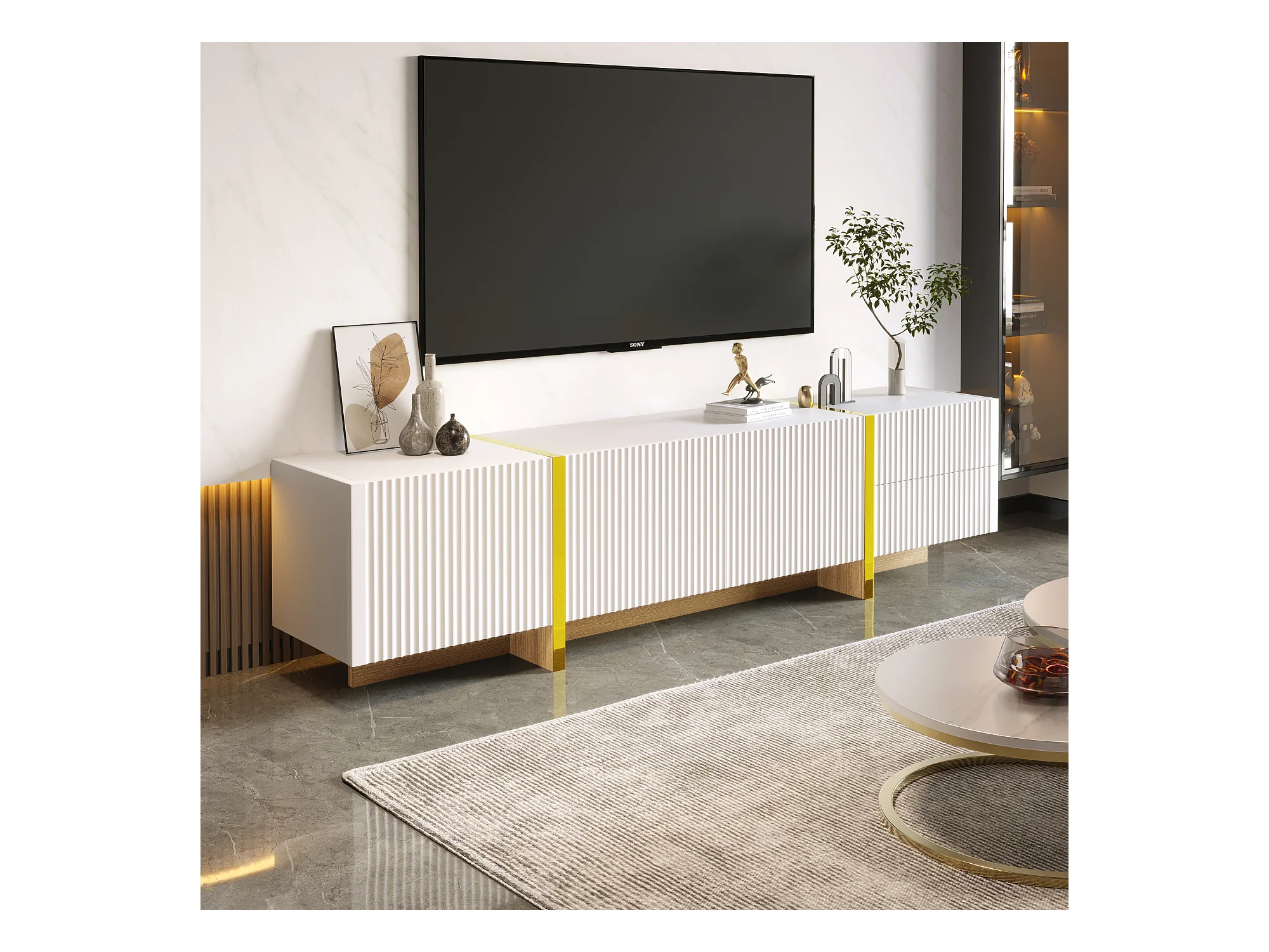 Móvel de TV branco 190 cm Design moderno 2 portas 2 gavetas 80 polegadas Armazenamento de TV