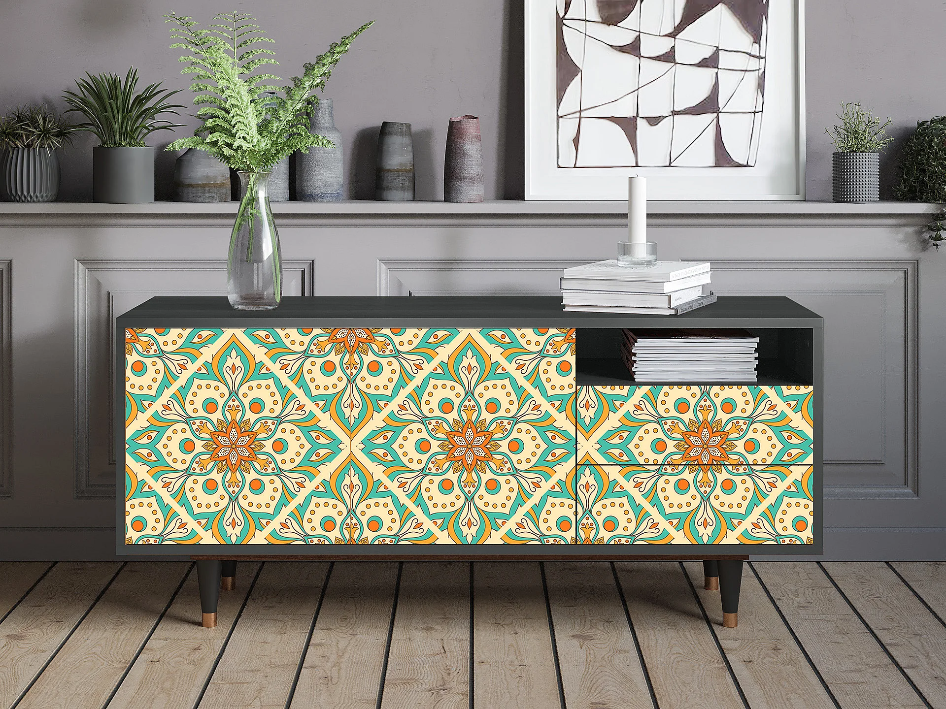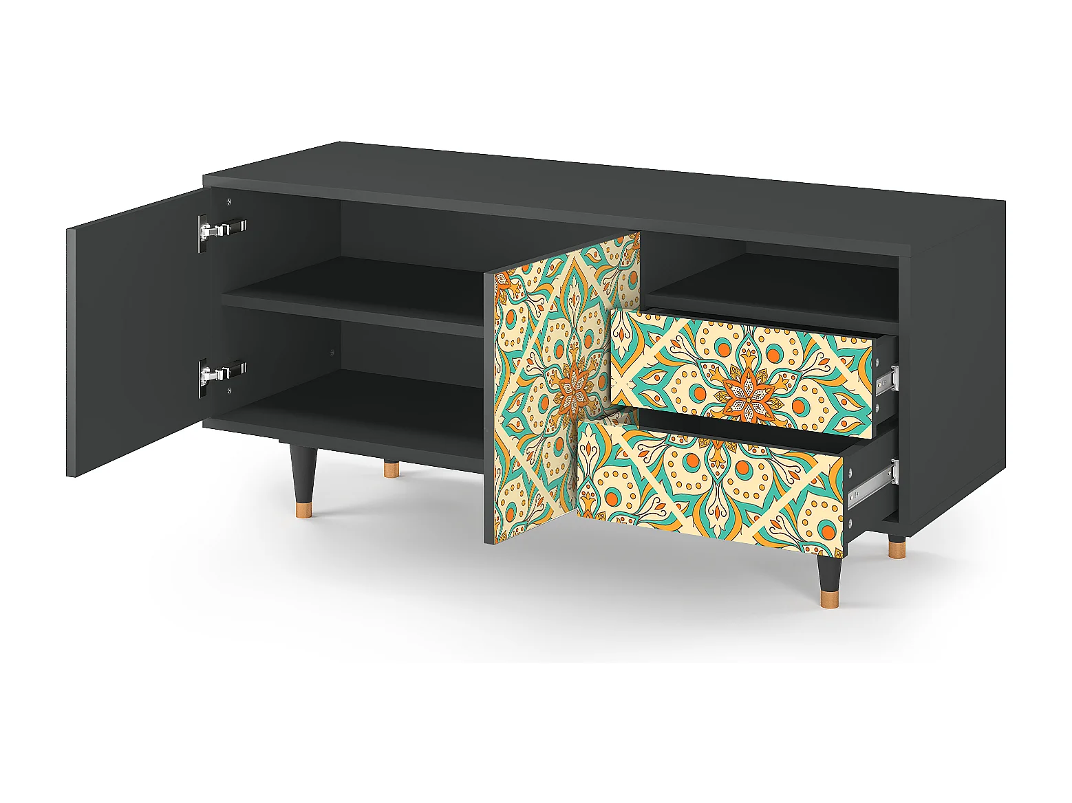 Mueble de TV - 125х56х41 cm - T7 - Hindu Daisy, Antracite