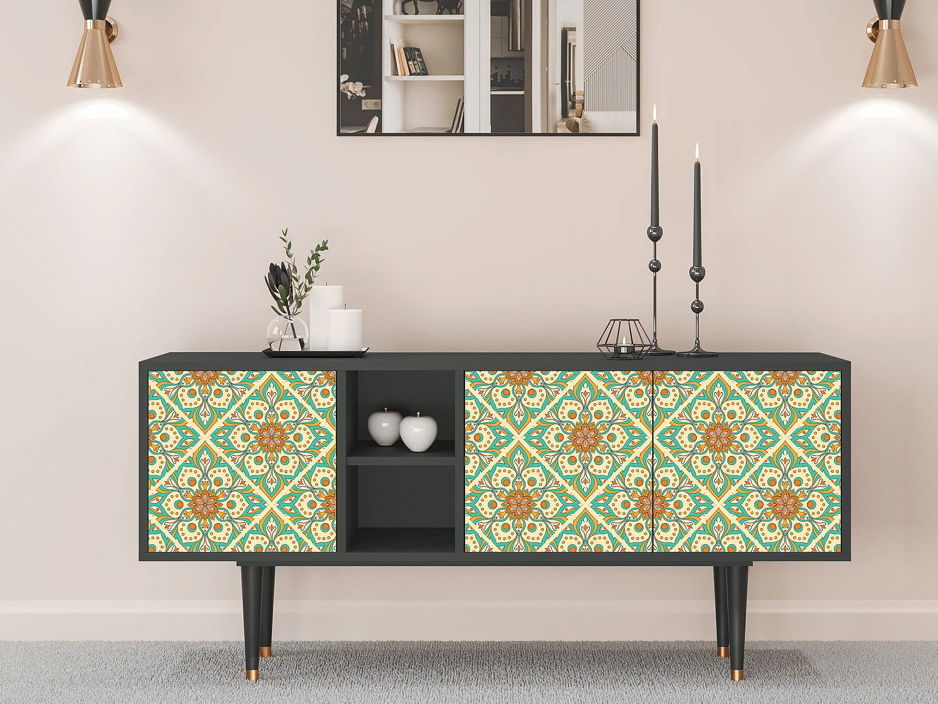 Mueble de TV - 150х69х41 cm - T5 - Hindu Daisy, Antracite
