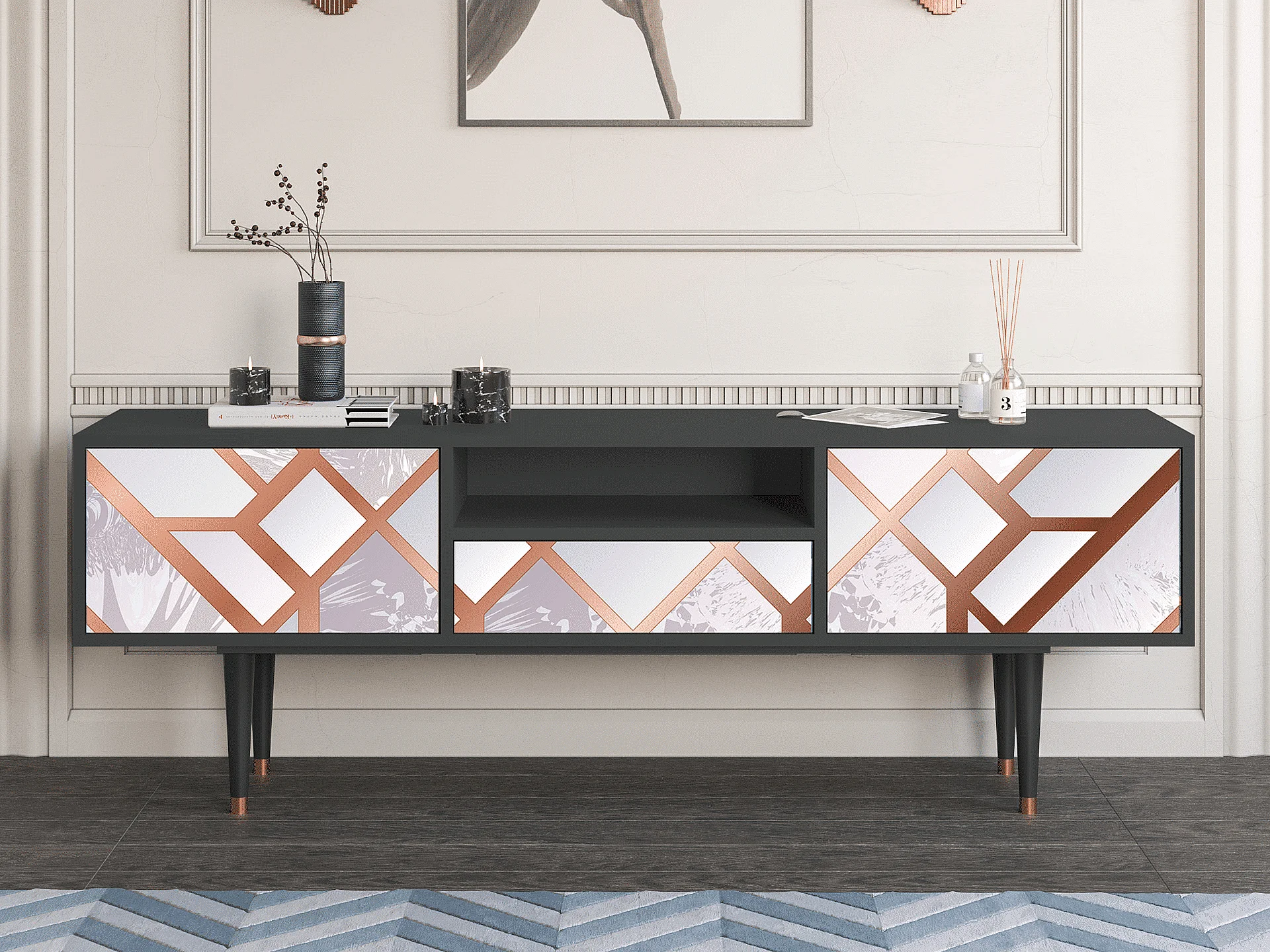 Mueble de TV - 170х59х41 cm - T6 - Pastel Fairytale, Antracite