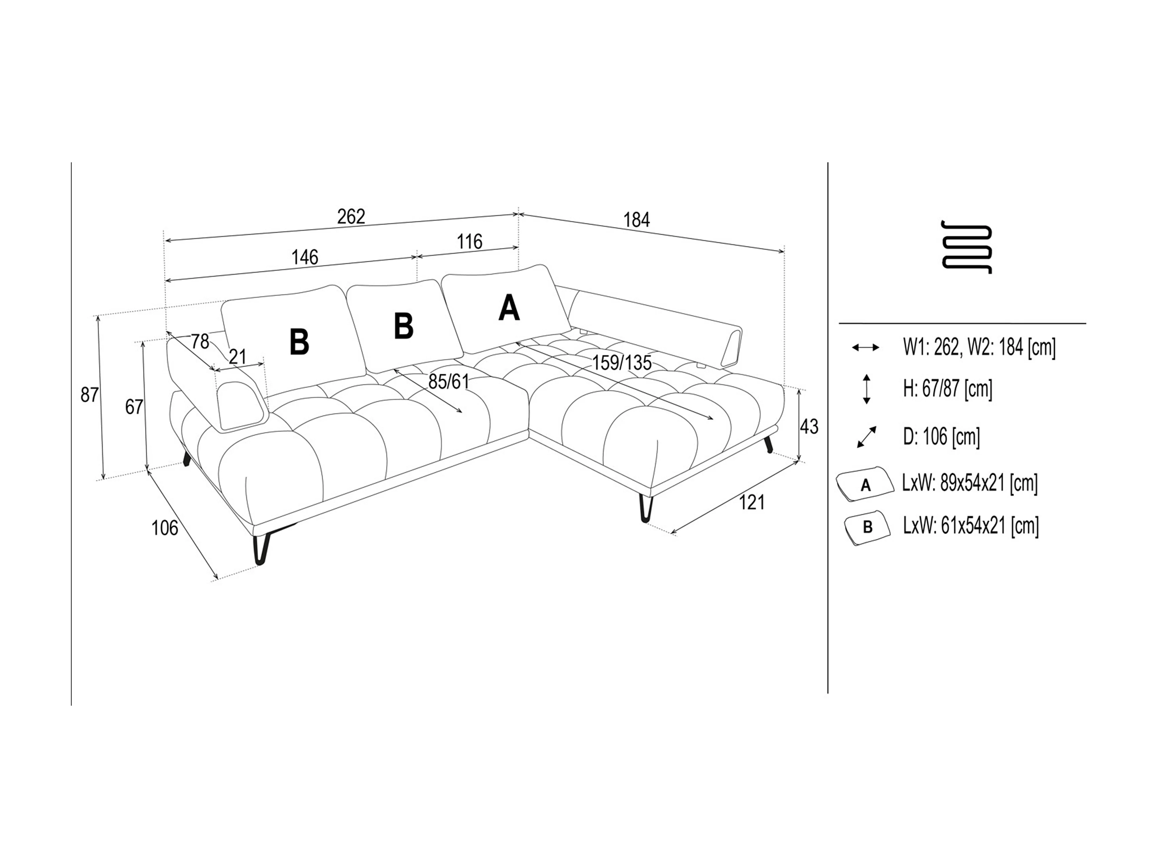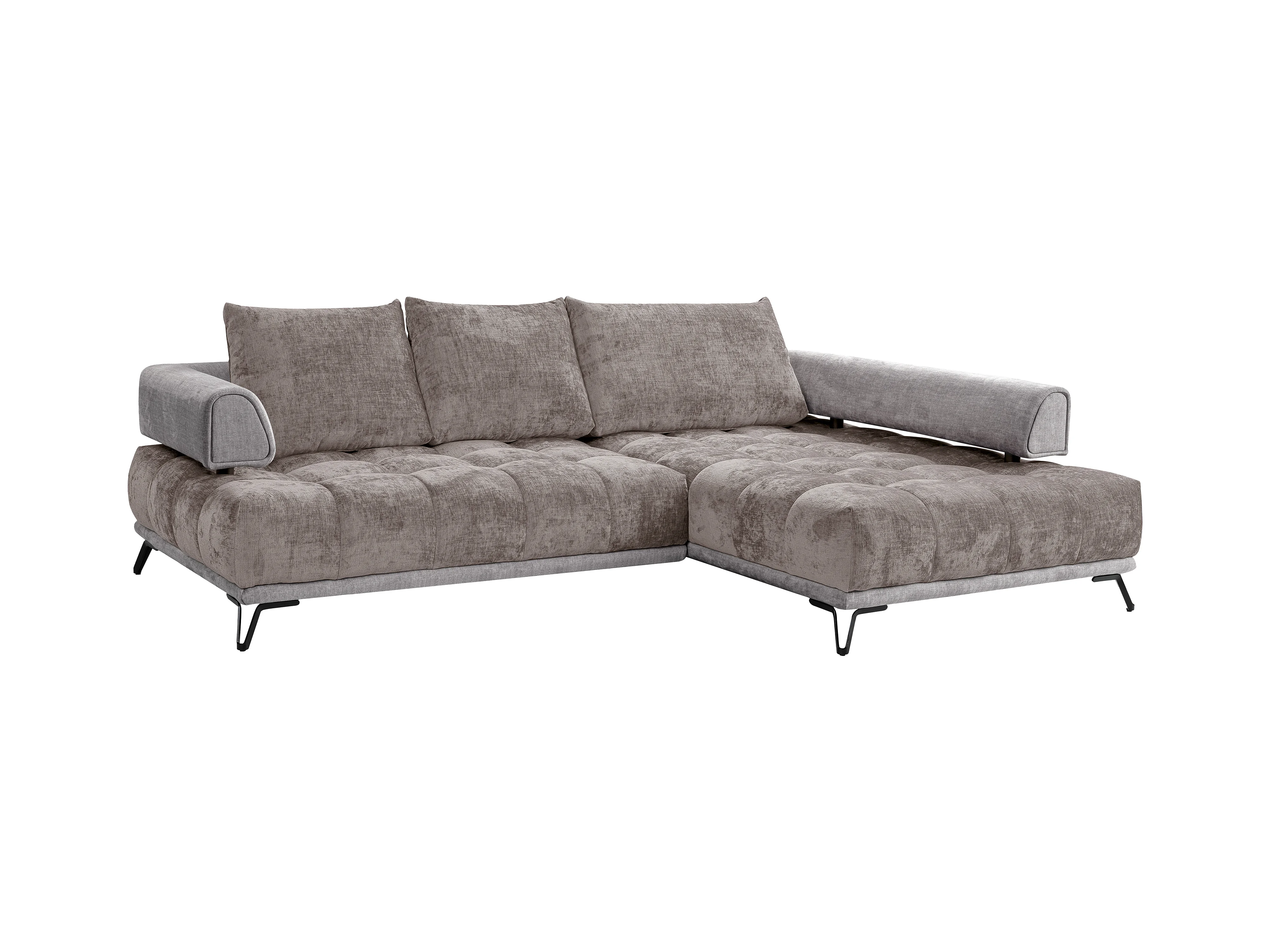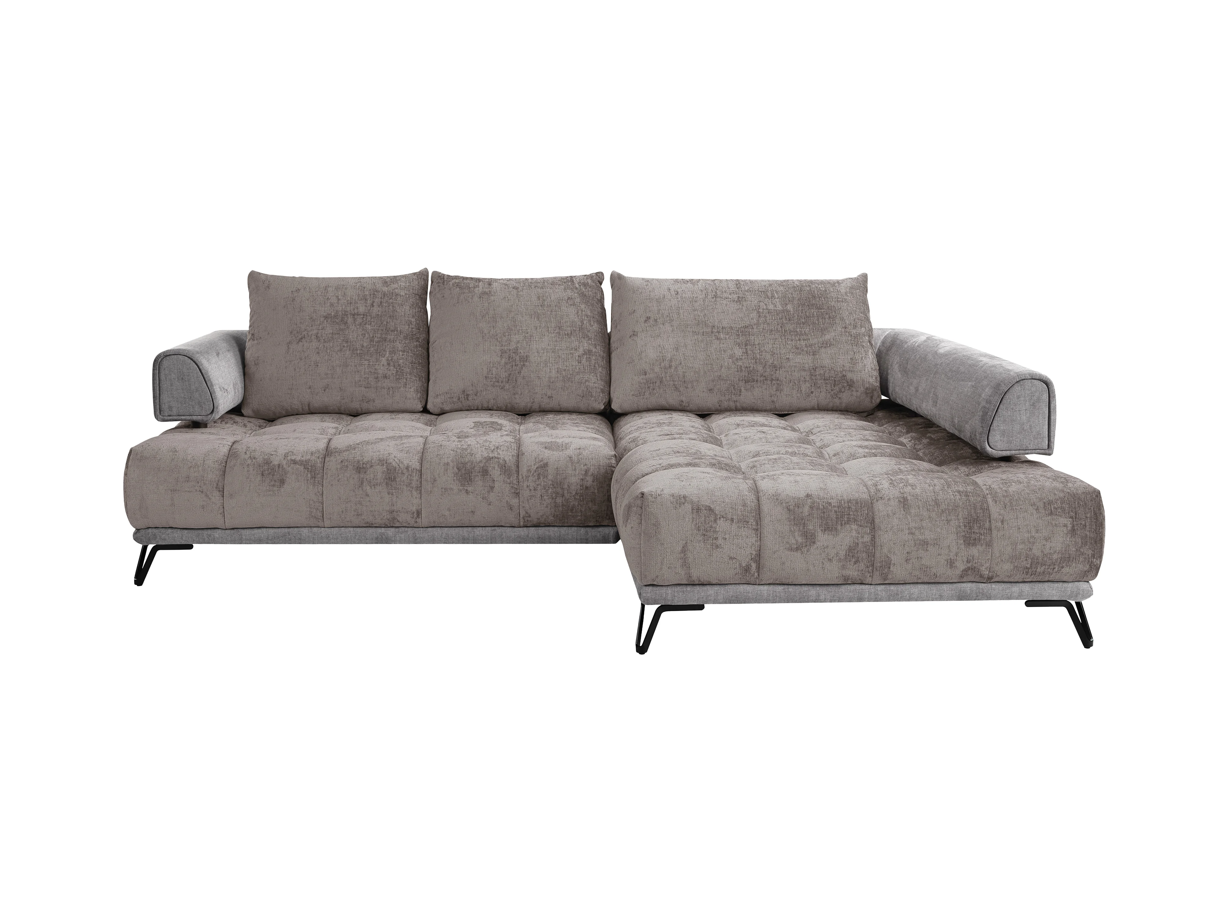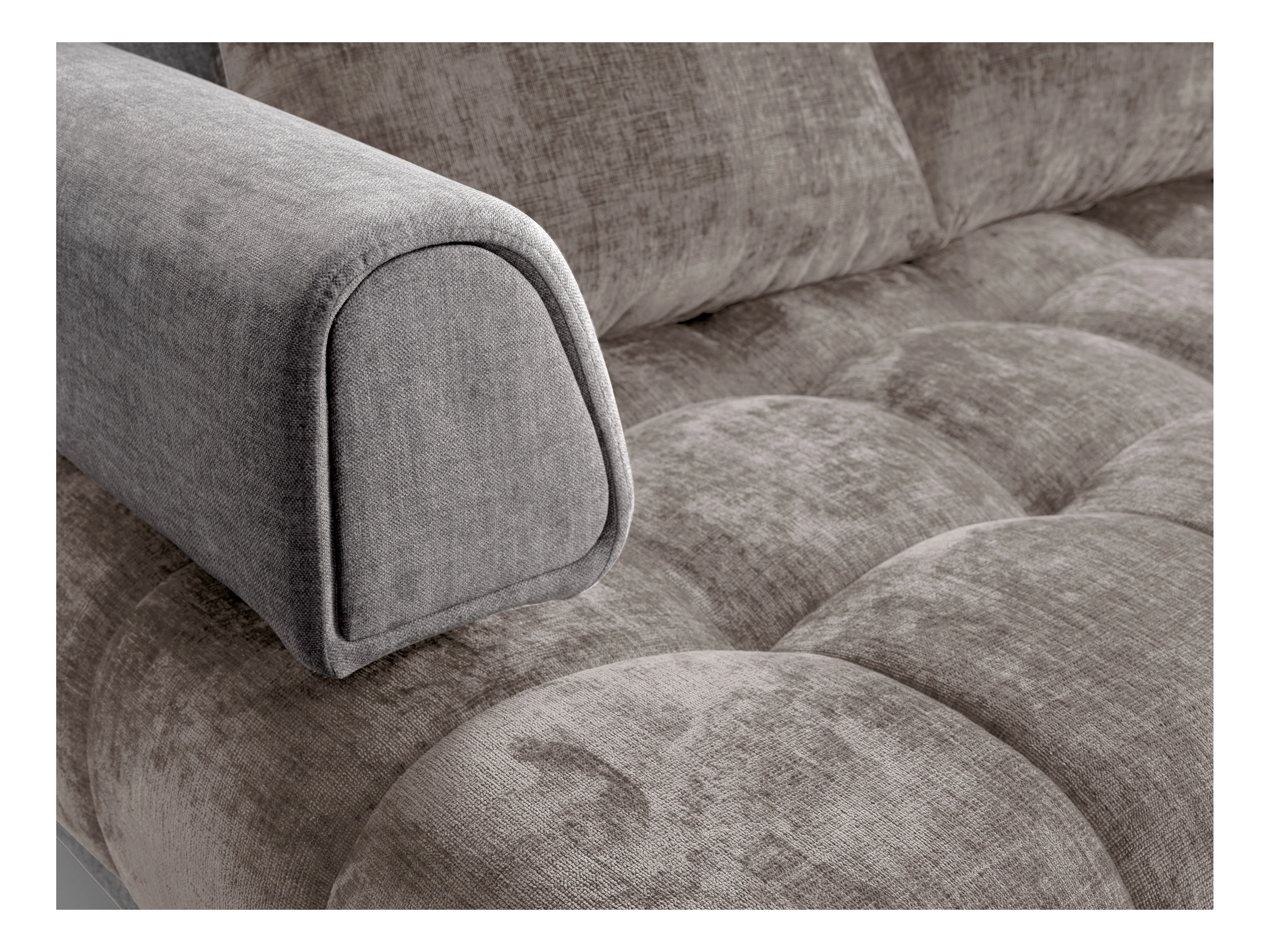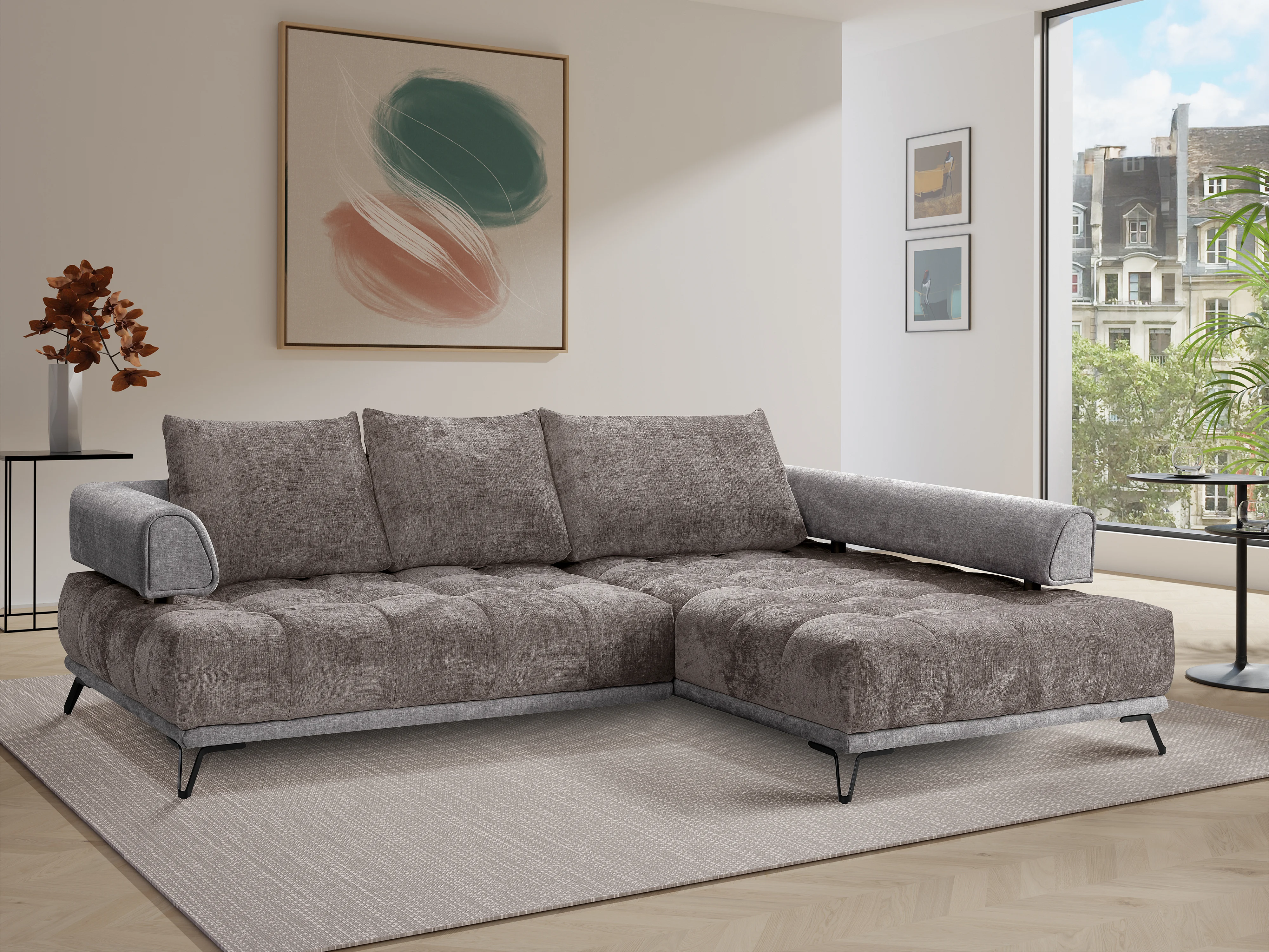 Sofá de canto direito em tecido chenille e veludo cinza - NIVORIA