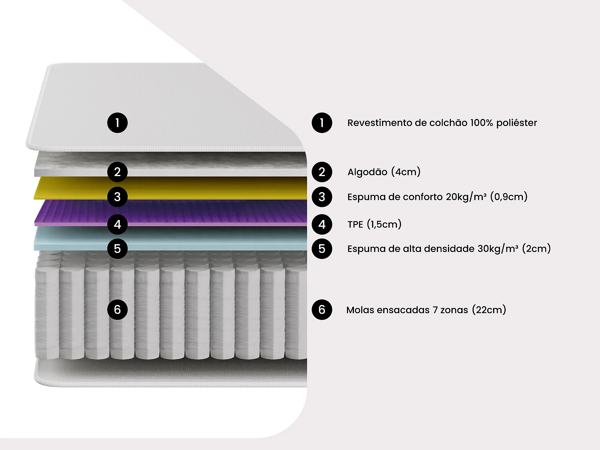 Conjunto 180 x 200 cm com sommier estofado + colchão com molas ensacadas 7 zonas acolhimento TPE, espessura 28 cm - ONEBIA da PALACIO