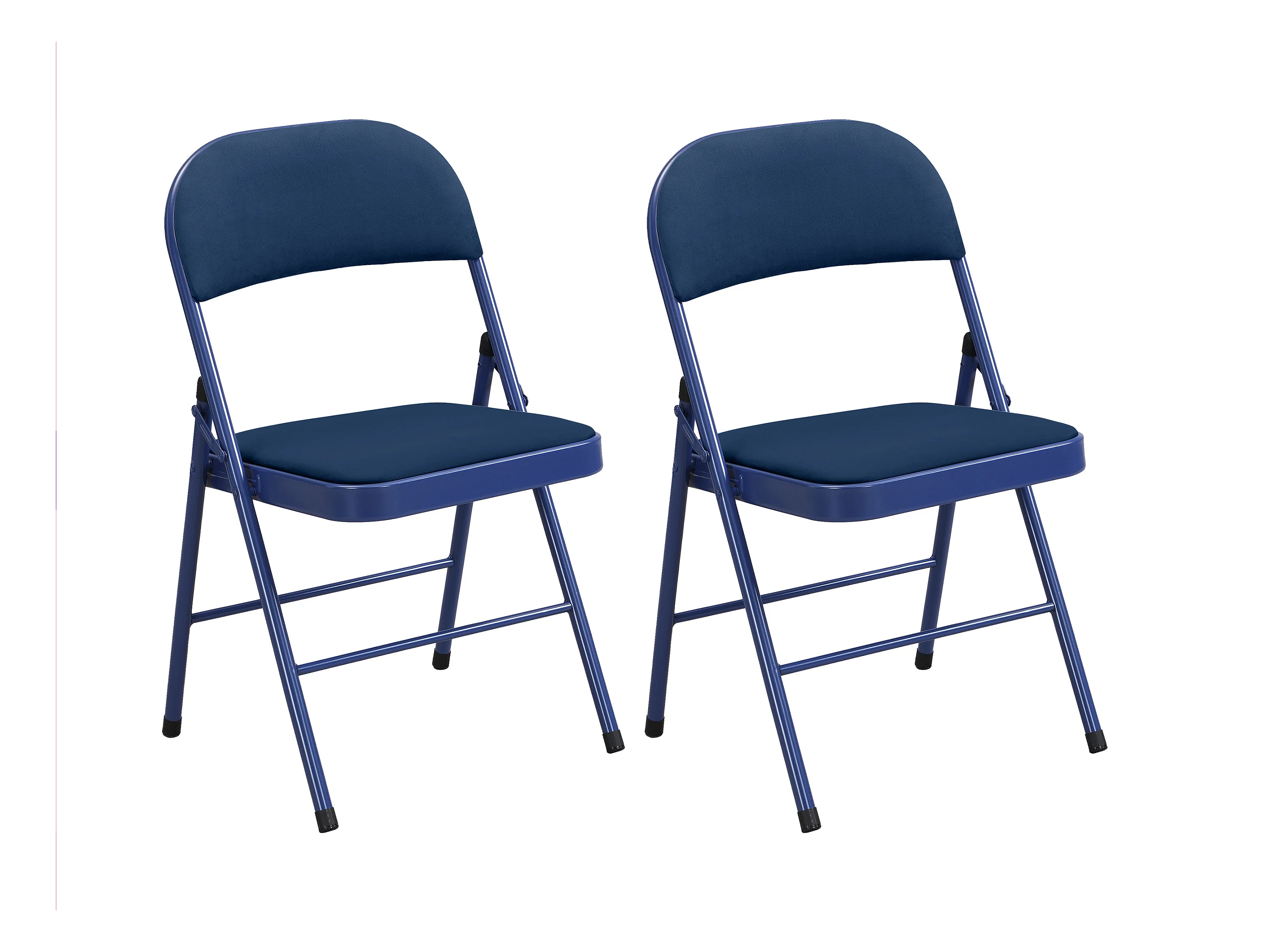 Conjunto de 2 cadeiras dobráveis em veludo e metal azul - ORTENSIA