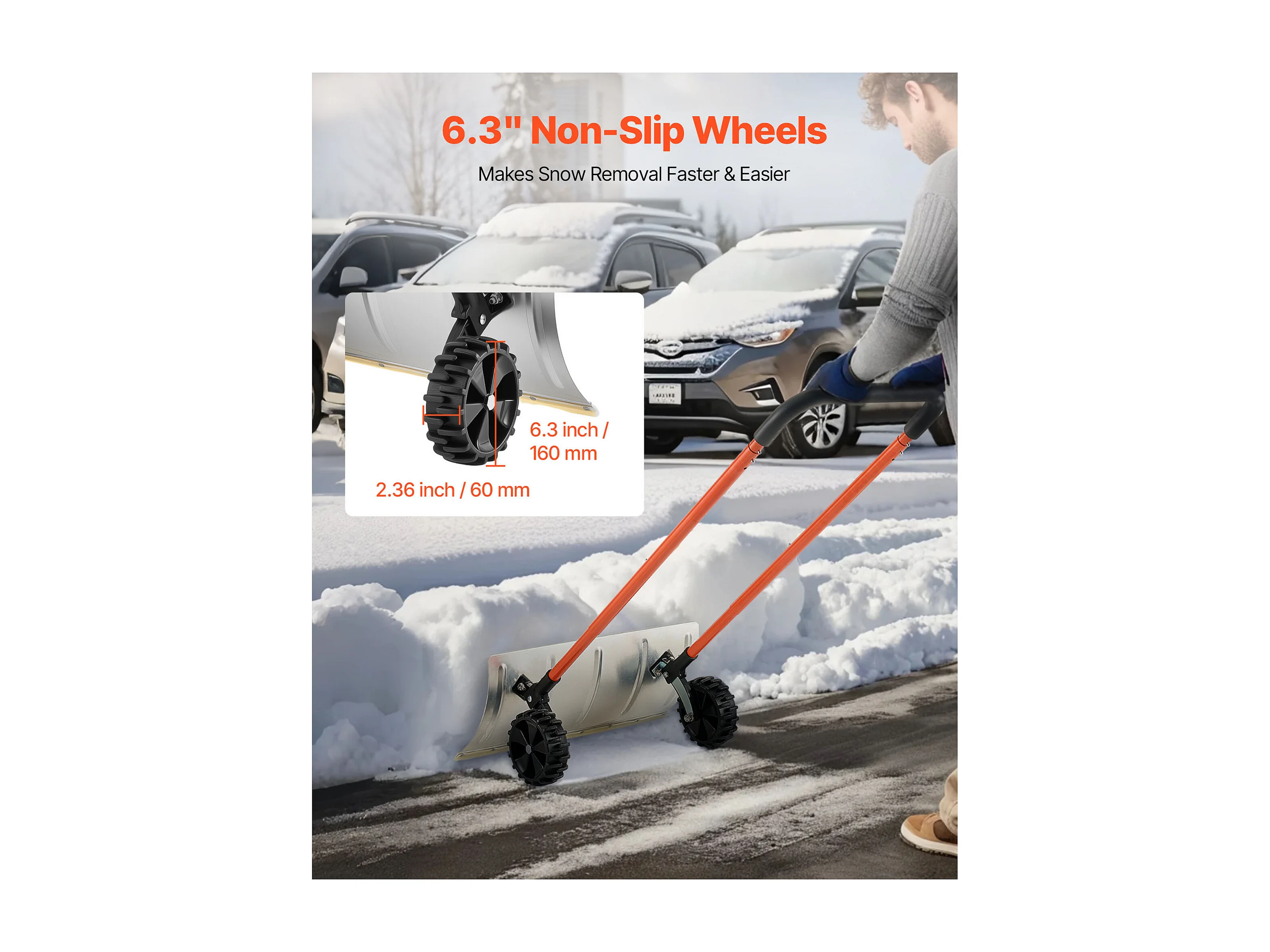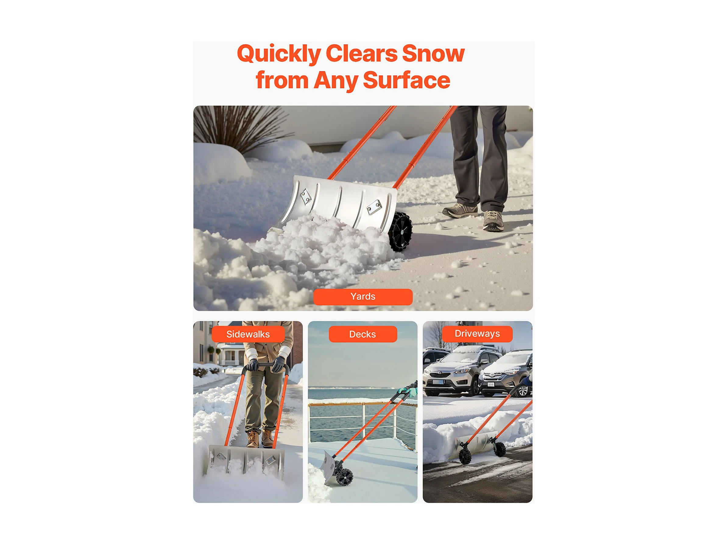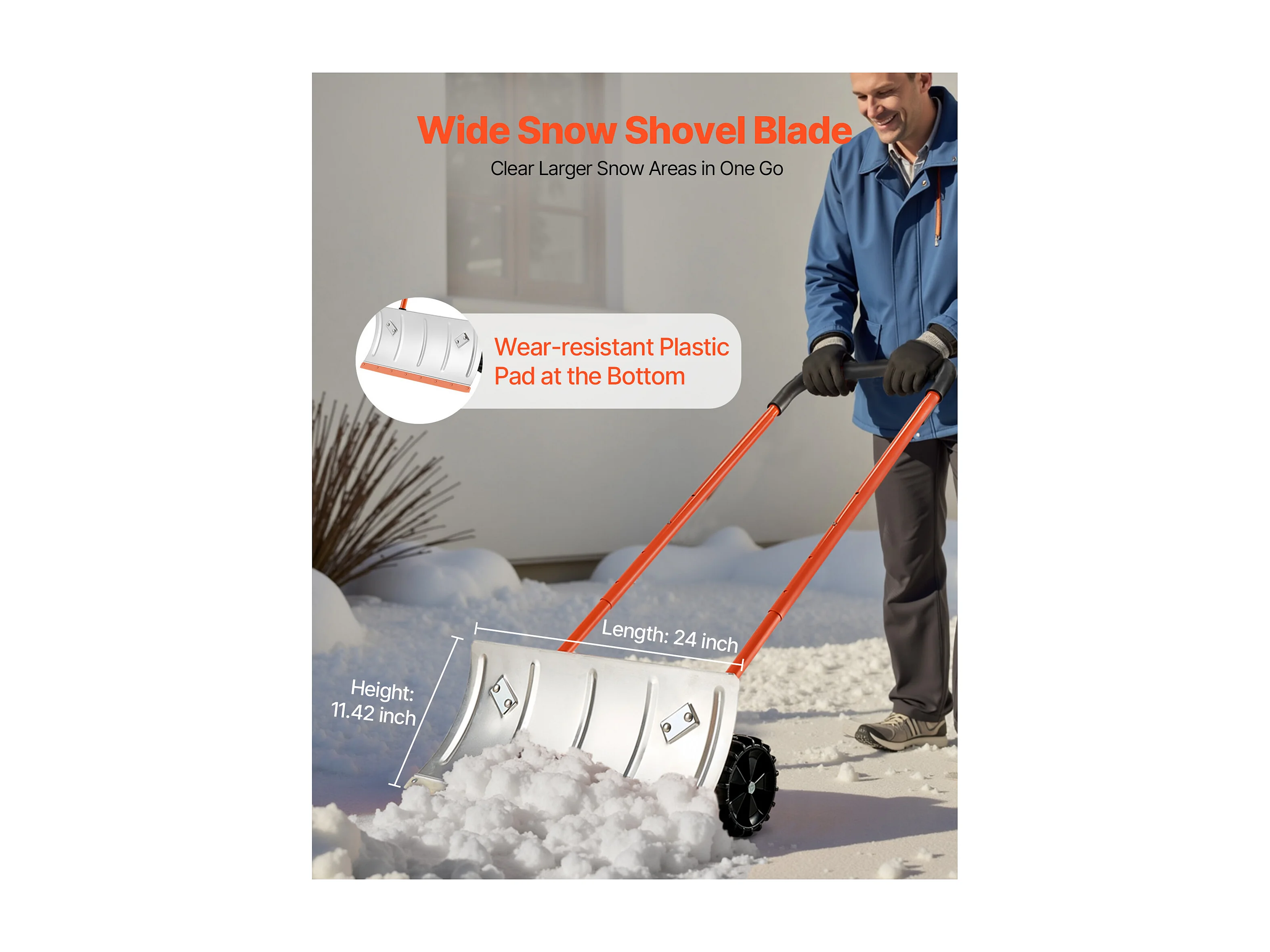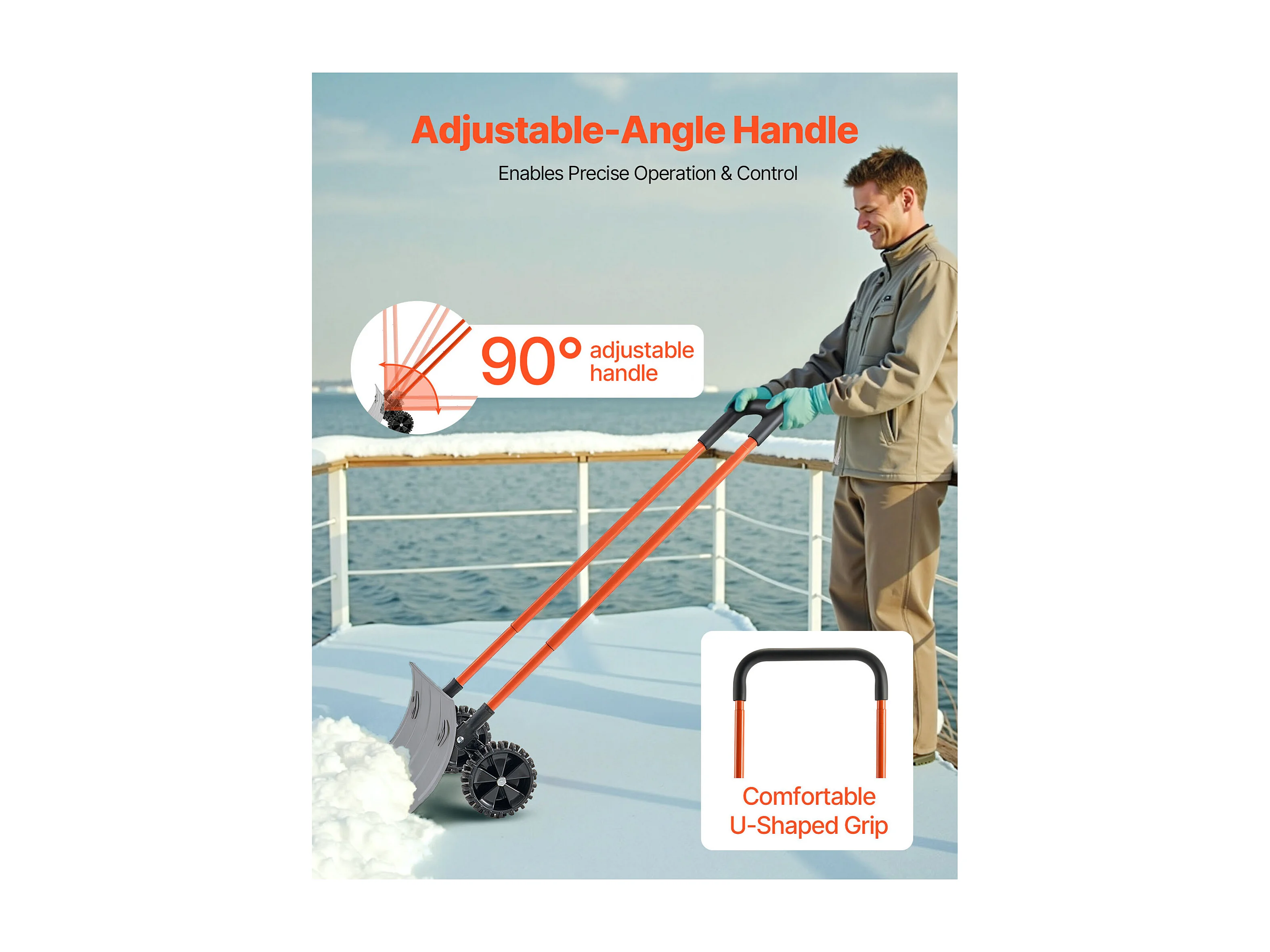 Pá de Neve SucceBuy sobre Rodas, 61 cm, Empurrador de Neve com Lâmina Bidirecional, Cabo Ajustável 90°, Pá de Remoção de Neve Metálica, para Limpeza