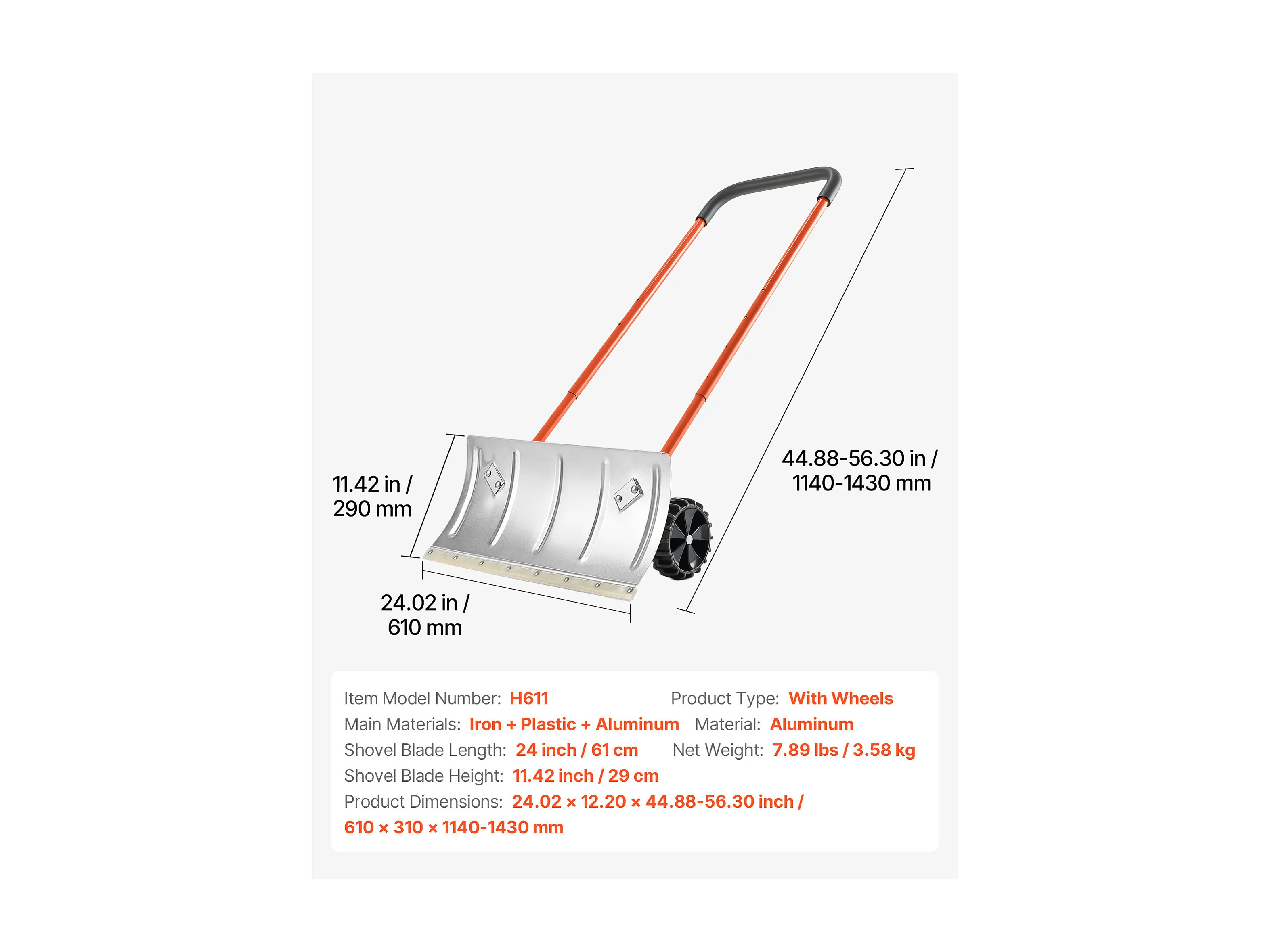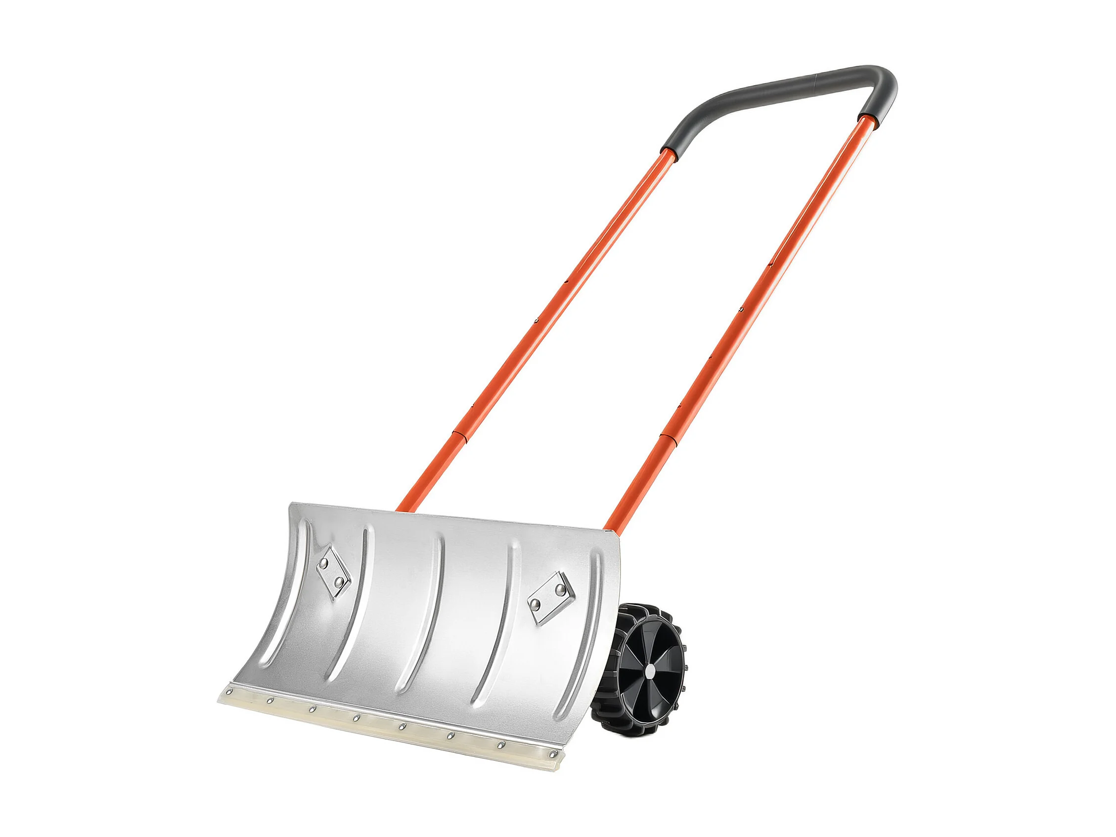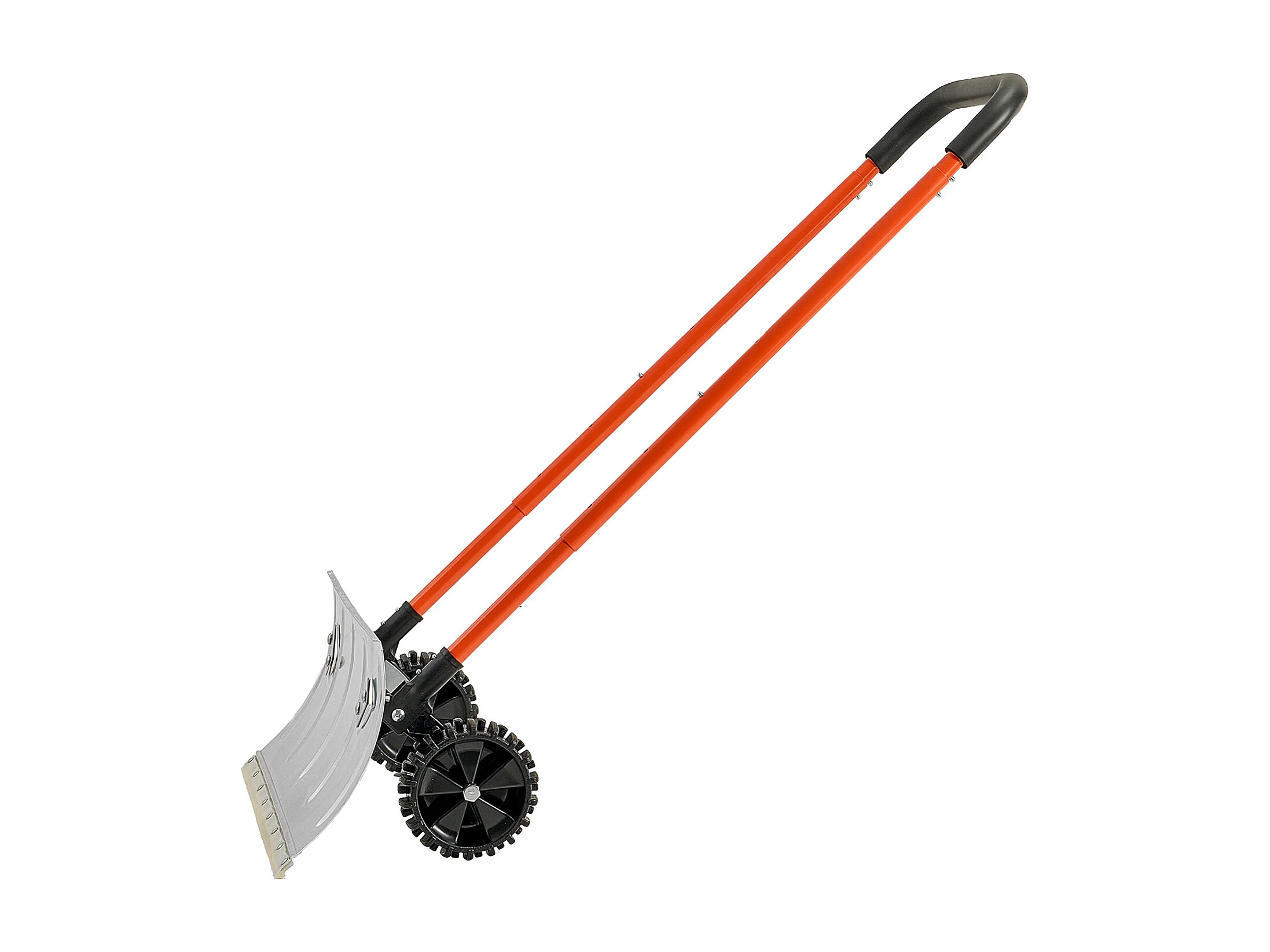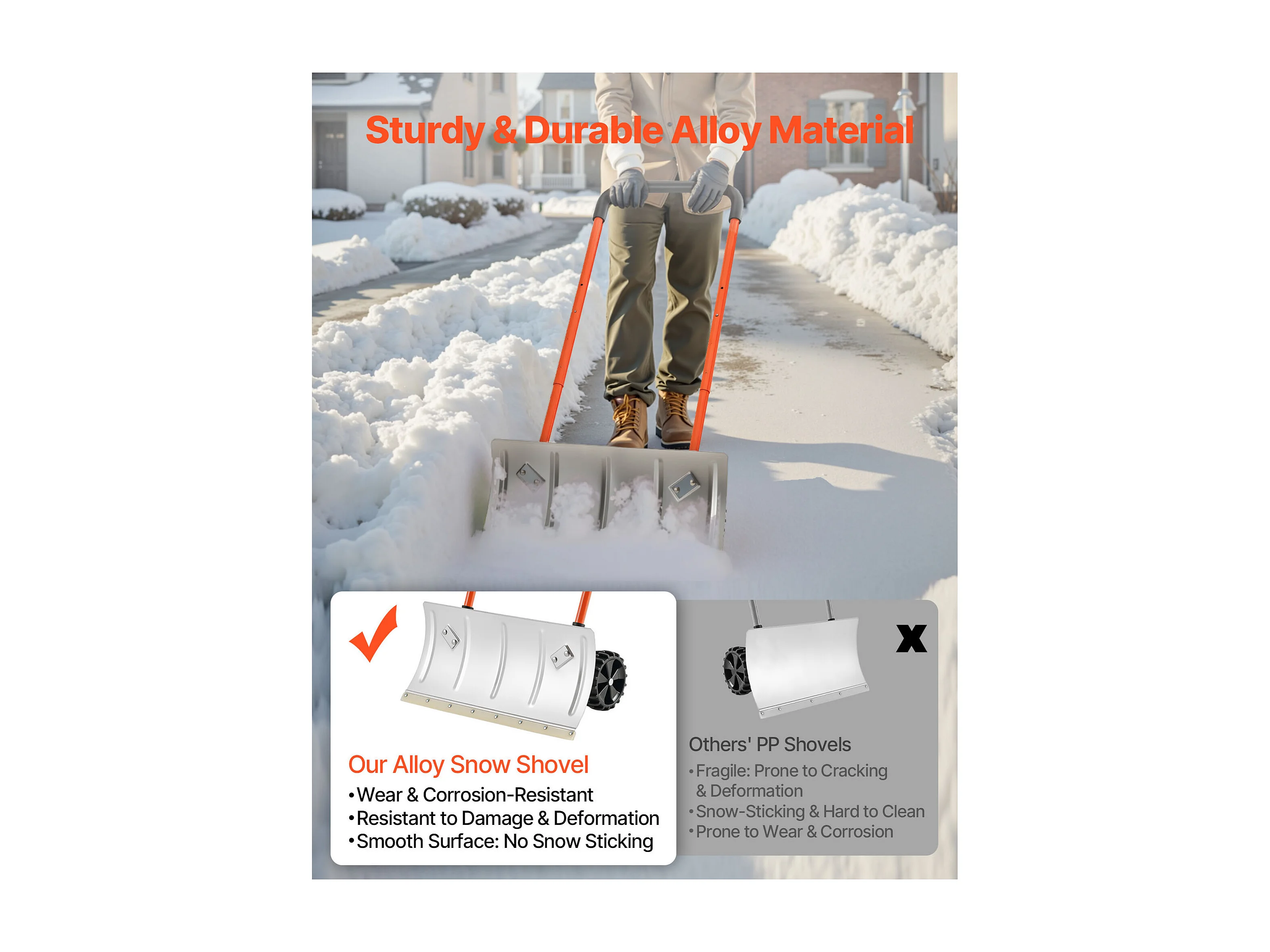 Pá de Neve SucceBuy sobre Rodas, 61 cm, Empurrador de Neve com Lâmina Bidirecional, Cabo Ajustável 90°, Pá de Remoção de Neve Metálica, para Limpeza