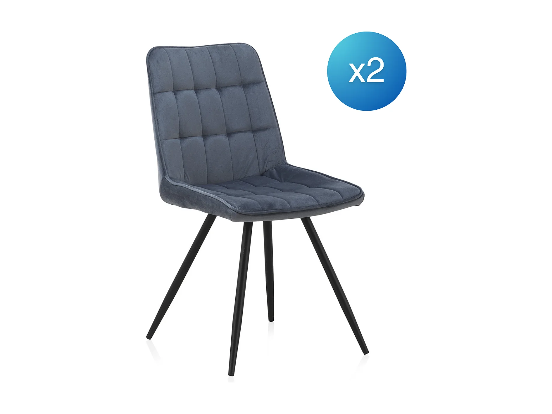 Pacote 2 cadeiras estofadas azuis com pés metálicos pretos