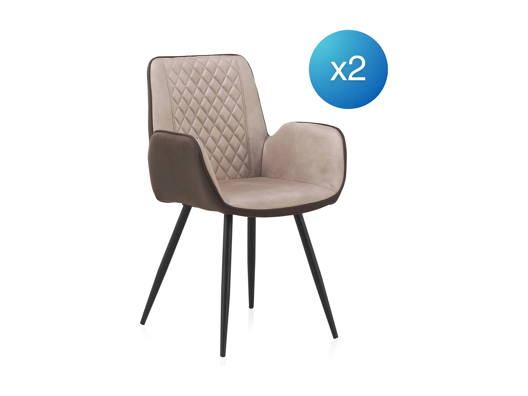 Pacote 2 cadeirões estofados bicolores com pés em metal preto