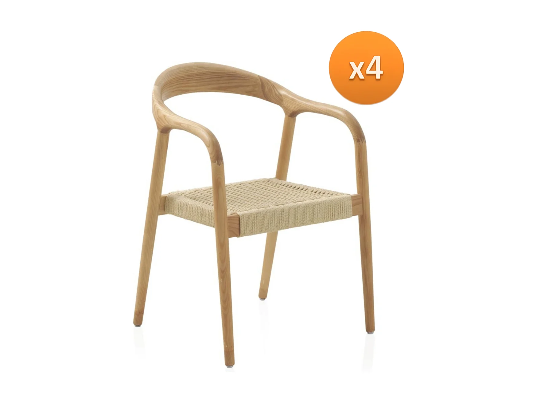Pacote 4 cadeirões em madeira de freixo com assento entrançado