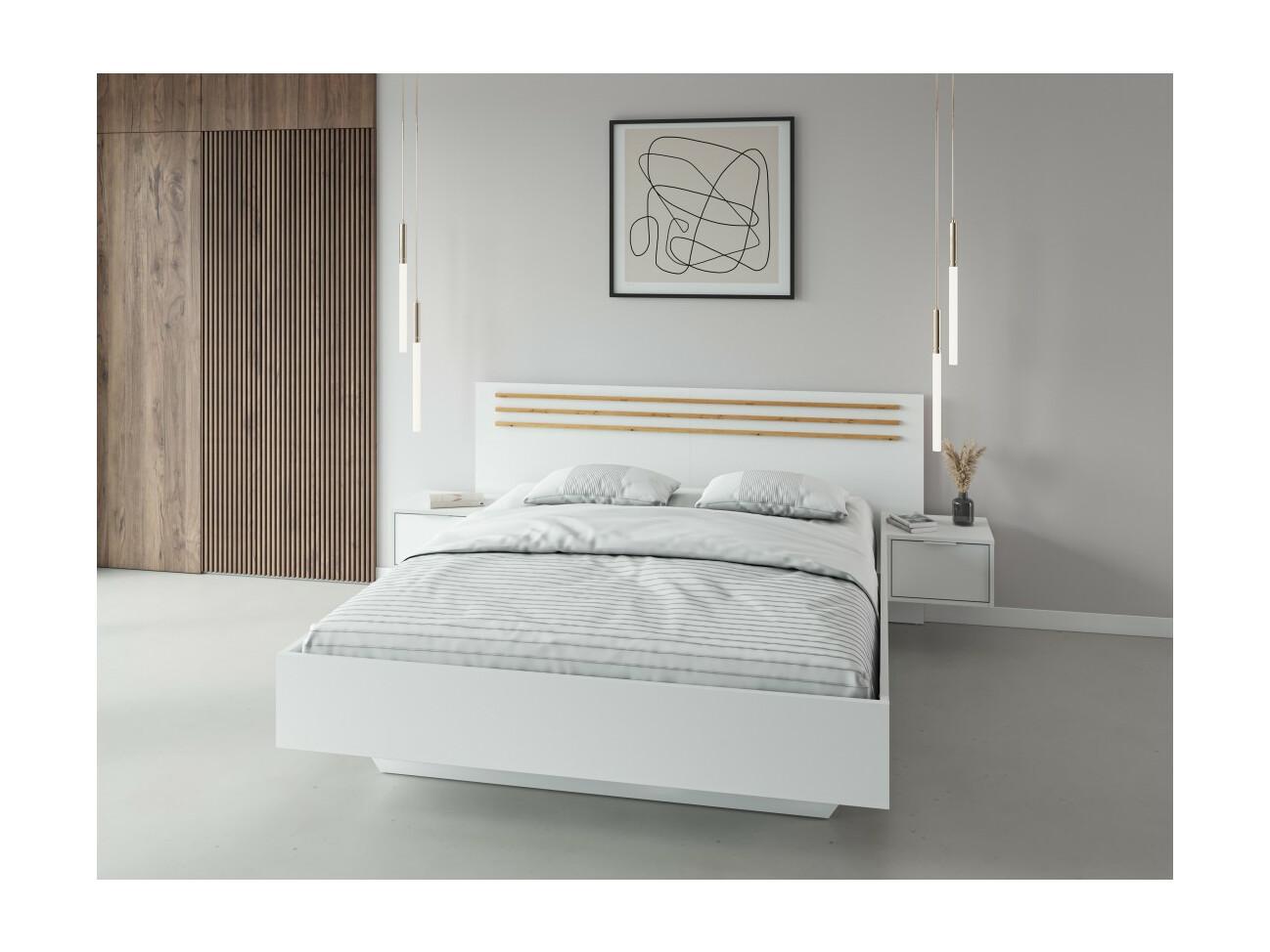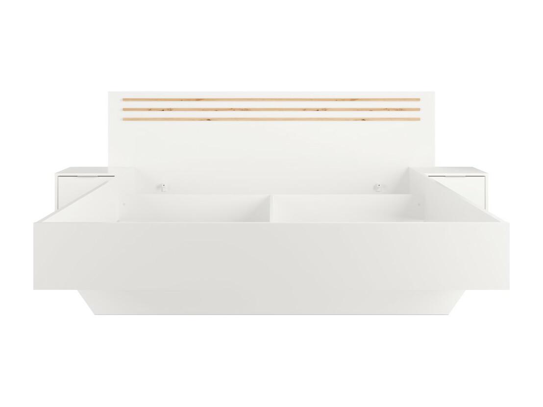 Pack cama FLORENCE – 160x200 cm – Com estrado + 2 gavetas – Criados-mudos integrados – Branco e carvalho