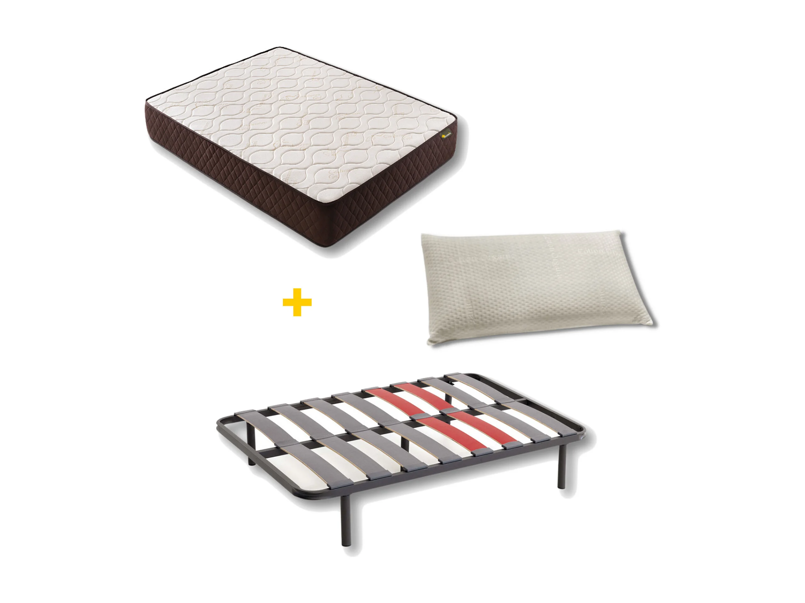 Pack Colchão e Almofada Viscoelástica e Cama de cama Descansin | 100 x 200 | 22 cm de altura com 7 zonas de descanso | Efeito nuvem | Silencioso