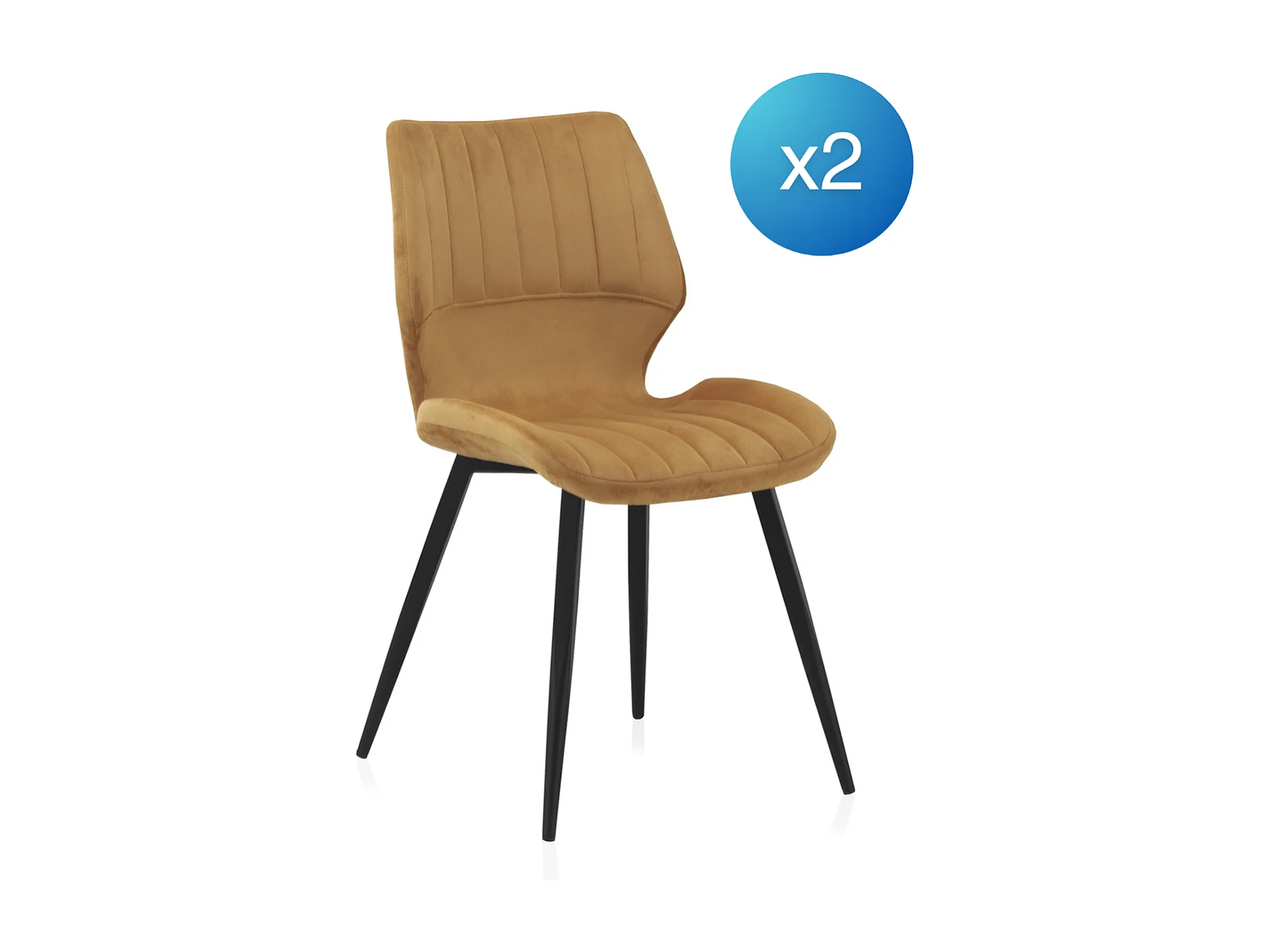 Pacote de 2 cadeiras estofadas mostarda com pés metálicos pretos