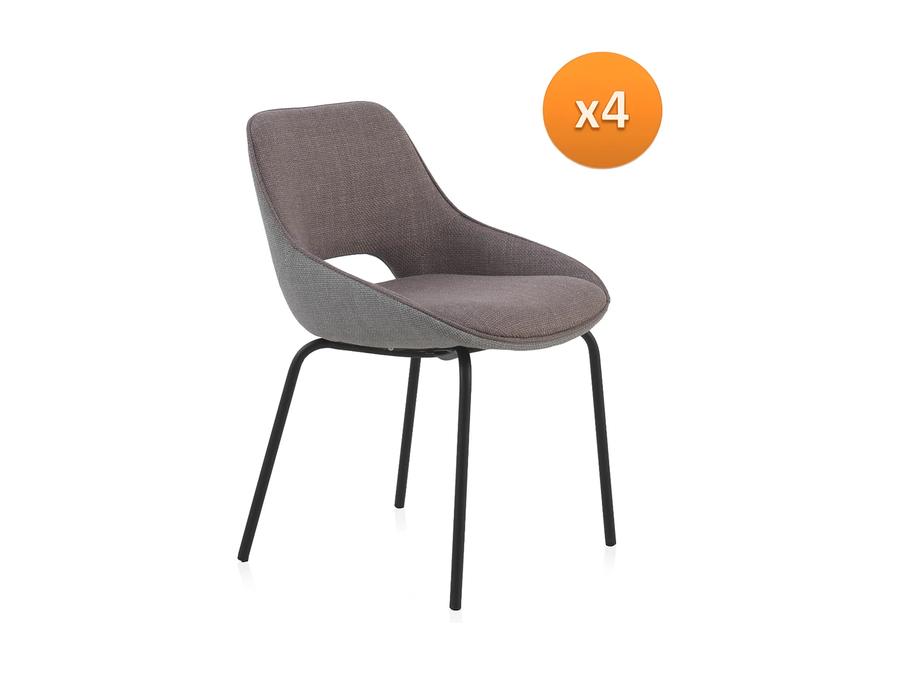 Pacote de 4 cadeiras estofadas bicolores castanho/cinzento com pés metálicos pretos