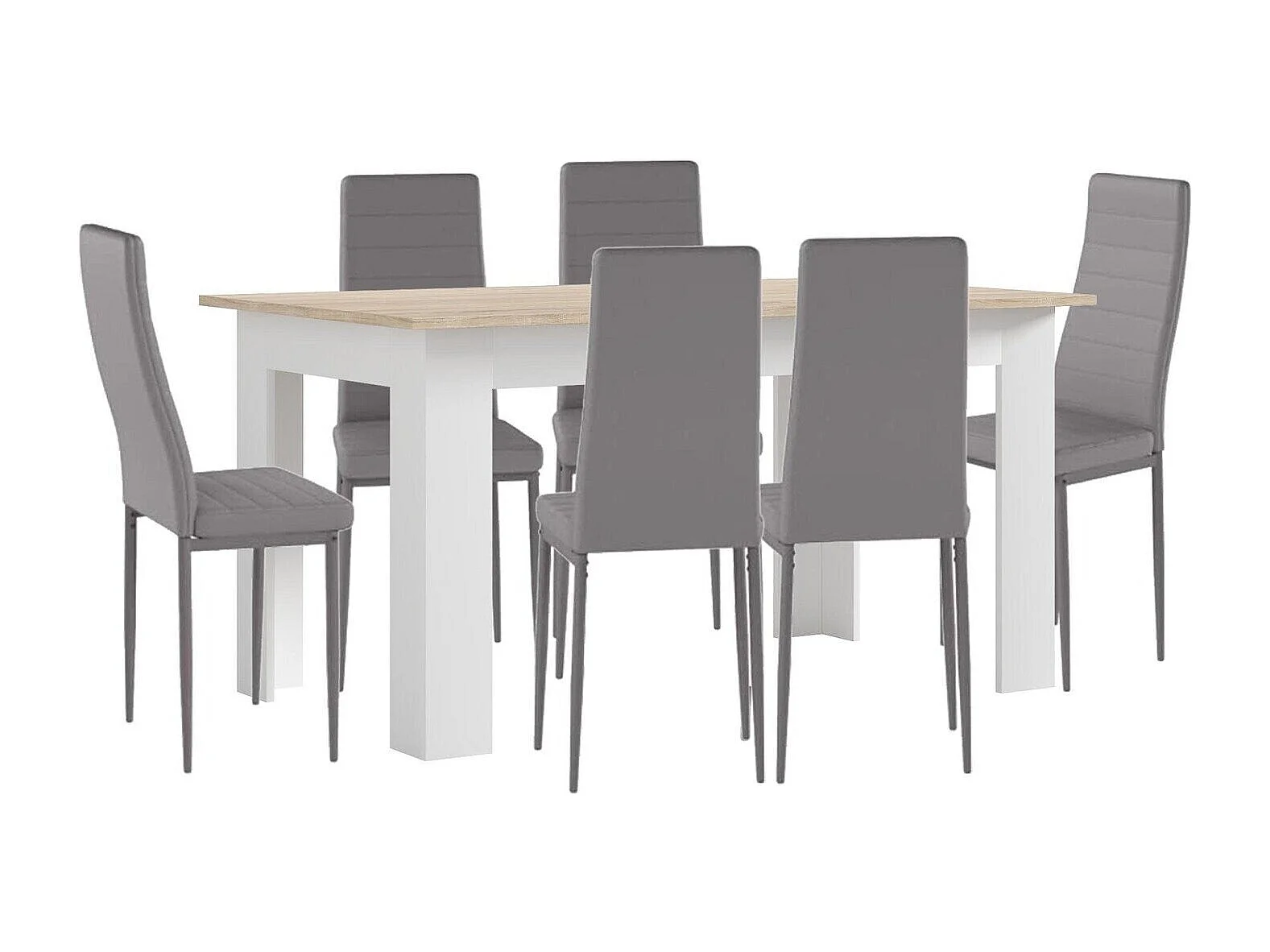 Conjunto Mesa de Jantar ou Cozinha Branco e Carvalho + 6 Cadeiras de Couro Sintético/metal Cinza
